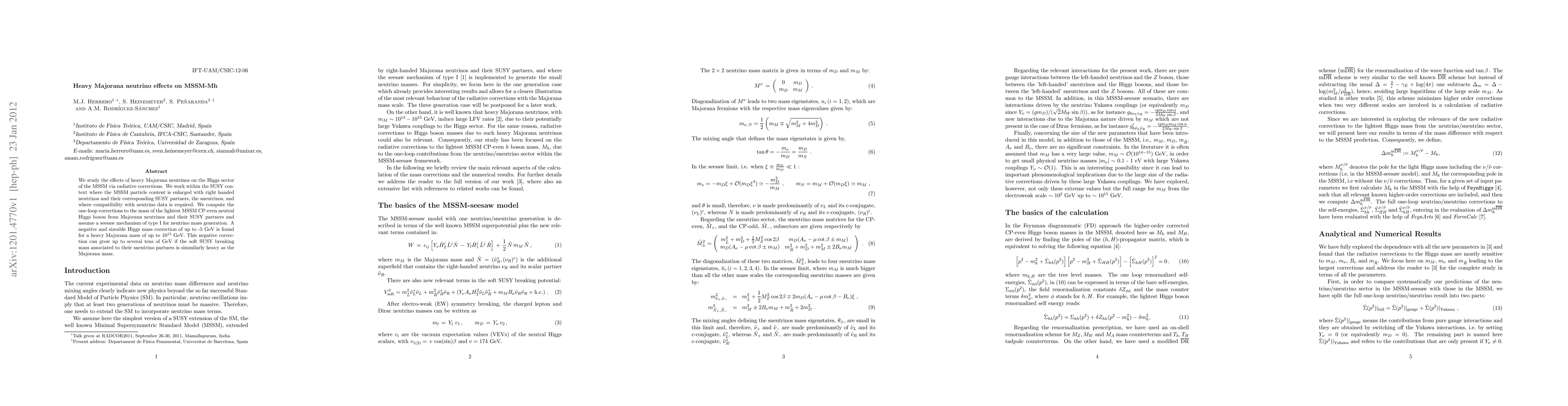 We study the effects of heavy Majorana neutrinos on the Higgs sector of the MSSM via radiative corrections. We work within the SUSY context where the MSSM particle content is enlarged with right handed neutrinos and their corresponding SUSY partners, the sneutrinos, and where compatibility with neutrino data is required. We compute the one-loop corrections to the mass of the lightest MSSM CP-even neutral Higgs boson from Majorana neutrinos and their SUSY partners and assume a seesaw mechanism of type I for neutrino mass generation. A negative and sizeable Higgs mass correction of up to -5 GeV is found for a heavy Majorana mass of up to 10^{15} GeV. This negative correction can grow up to several tens of GeV if the soft SUSY breaking mass associated to their sneutrino partners is simmilarly heavy as the Majorana mass.