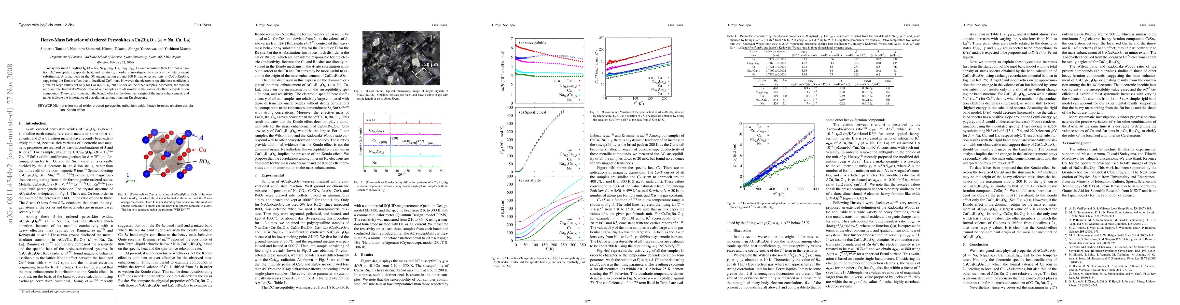 We synthesized ACu3Ru4O12 (A = Na, Na0.5Ca0.5, Ca, Ca0.5La0.5, La) and measured their DC magnetization, AC susceptibility, specific heat, and resistivity, in order to investigate the effects of the hetero-valent substitution. A broad peak in the DC magnetization around 200 K was observed only in CaCu3Ru4O12, suggesting the Kondo effect due to localized Cu2+ ions. However, the electronic specific heat coefficients exhibit large values not only for CaCu3Ru4O12 but also for all the other samples. Moreover, the Wilson ratio and the Kadowaki-Woods ratio of our samples are all similar to the values of other heavy-fermion compounds. These results question the Kondo effect as the dominant origin of the mass enhancement, and rather indicate the importance of correlations among itinerant Ru electrons.