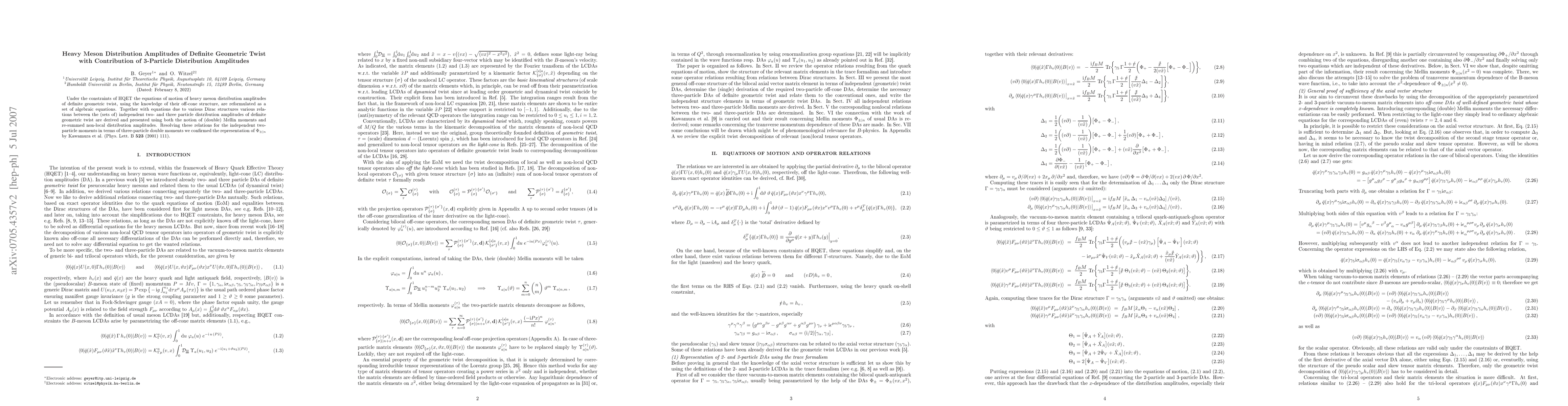 Under the constraints of HQET the equations of motion of heavy meson distribution amplitudes of definite geometric twist, using the knowledge of their off-cone structure, are reformulated as a set of algebraic equations. Together with equations due to various Dirac structures various relations between the (sets of) independent two- and three particle distribution amplitudes of definite geometric twist are derived and presented using both the notion of (double) Mellin moments and re-summed non-local distribution amplitudes. Resolving these relations for the independent two-particle moments in terms of three-particle double moments we confirmed the representation of $\Phi_{\pm|n}$ by Kawamura et al. (Phys. Lett. B \bf{523} (2001) 111).