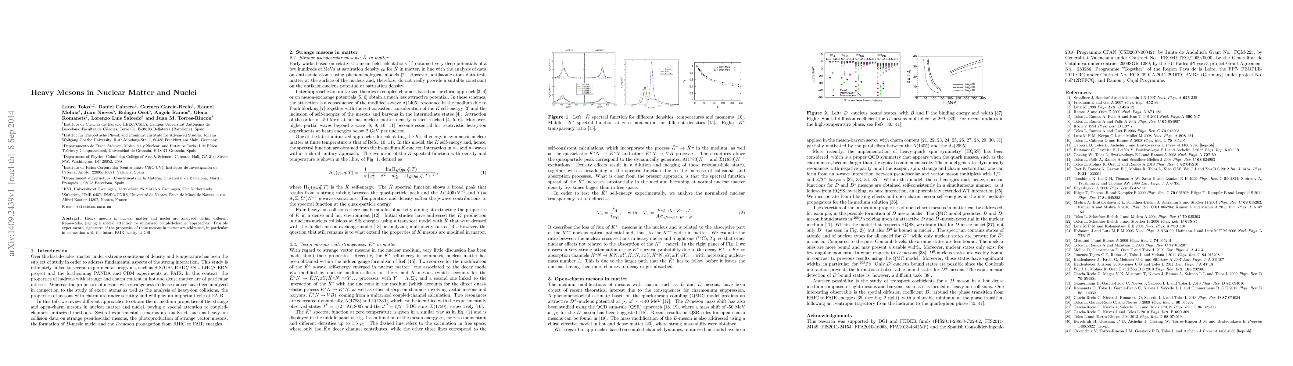 This paper examines heavy mesons in nuclear matter and nuclei using unitarized coupled-channel approaches, focusing on potential experimental signatures relevant to the future FAIR facility at GSI. The study aims to understand the behavior of these mesons in dense environments.