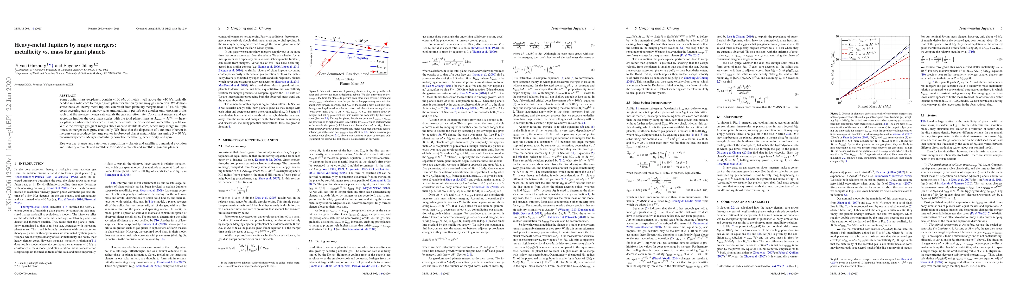 Some Jupiter-mass exoplanets contain $\sim$$100\, M_\oplus$ of metals, well above the $\sim$$10\, M_\oplus$ typically needed in a solid core to trigger giant planet formation by runaway gas accretion. We demonstrate that such `heavy-metal Jupiters' can result from planetary mergers near $\sim$10 au. Multiple cores accreting gas at runaway rates gravitationally perturb one another onto crossing orbits such that the average merger rate equals the gas accretion rate. Concurrent mergers and gas accretion implies the core mass scales with the total planet mass as $M_{\rm core} \propto M^{1/5}$ - heavier planets harbour heavier cores, in agreement with the observed mass-metallicity relation. While the average gas giant merges about once to double its core, others may merge multiple times, as merger trees grow chaotically. We show that the dispersion of outcomes inherent in mergers can reproduce the large scatter in observed planet metallicities, assuming $3-30\, M_\oplus$ pre-runaway cores. Mergers potentially correlate metallicity, eccentricity, and spin.