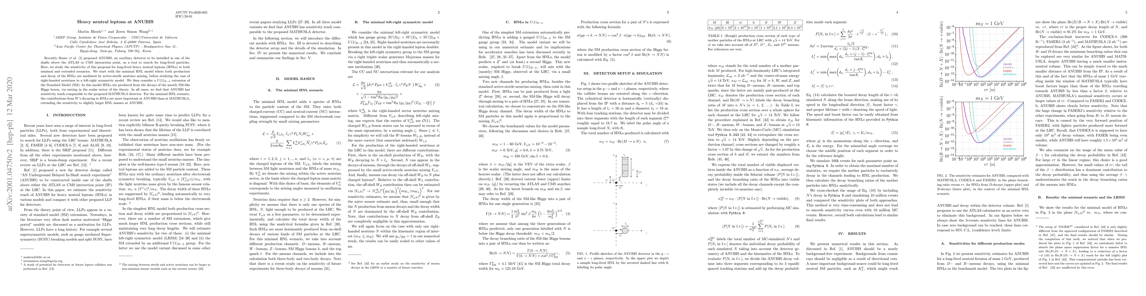 The paper presents a detailed analysis of the ANUBIS detector's sensitivity to long-lived HNLs, comparing it with other proposed detectors and providing insights into its performance in various theoretical frameworks.