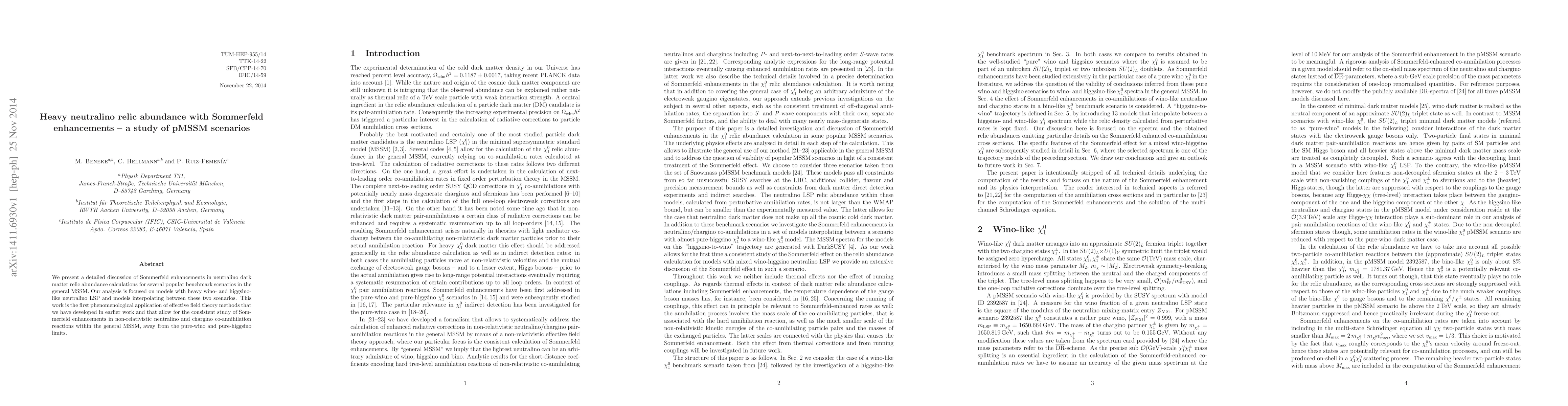 This paper investigates the relic abundance of heavy neutralino dark matter in the pMSSM, focusing on Sommerfeld enhancements in non-relativistic co-annihilation scenarios. It employs newly developed effective field theory methods to consistently analyze these enhancements across various wino- and higgsino-like neutralino models.