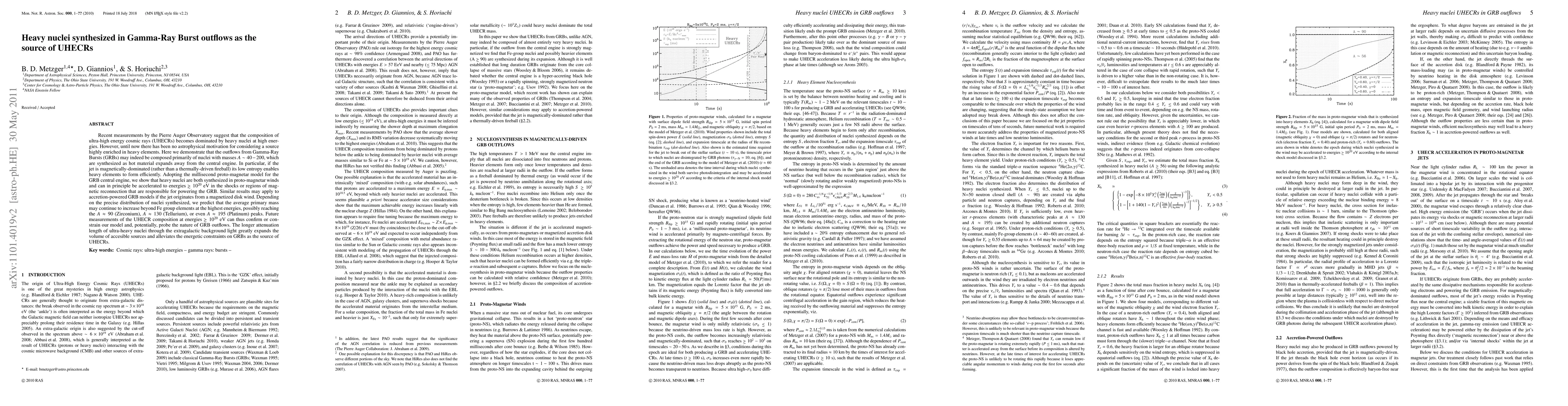 Recent measurements by the Pierre Auger Observatory suggest that the composition of ultra-high energy cosmic rays (UHECRs) becomes dominated by heavy nuclei at high energies. However, until now there has been no astrophysical motivation for considering a source highly enriched in heavy elements. Here we demonstrate that the outflows from Gamma-Ray Bursts (GRBs) may indeed be composed primarily of nuclei with masses A ~ 40-200, which are synthesized as hot material expands away from the central engine. In particular, if the jet is magnetically-dominated (rather than a thermally-driven fireball) its low entropy enables heavy elements to form efficiently. Adopting the millisecond proto-magnetar model for the GRB central engine, we show that heavy nuclei are both synthesized in proto-magnetar winds and can in principle be accelerated to energies >1e20 eV in the shocks or regions of magnetic reconnection that are responsible for powering the GRB. Similar results may apply to accretion-powered GRB models if the jet originates from a magnetized disk wind. Depending on the precise distribution of nuclei synthesized, we predict that the average primary mass may continue to increase beyond Fe group elements at the highest energies, possibly reaching the A ~ 90 (Zirconium), A ~ 130 (Tellurium), or even A ~ 195 (Platinum) peaks. Future measurements of the UHECR composition at energies >~ 1e20 eV can thus confirm or constrain our model and, potentially, probe the nature of GRB outflows. The longer attenuation length of ultra-heavy nuclei through the extragalactic background light greatly expands the volume of accesible sources and alleviates the energetic constraints on GRBs as the source of UHECRs.