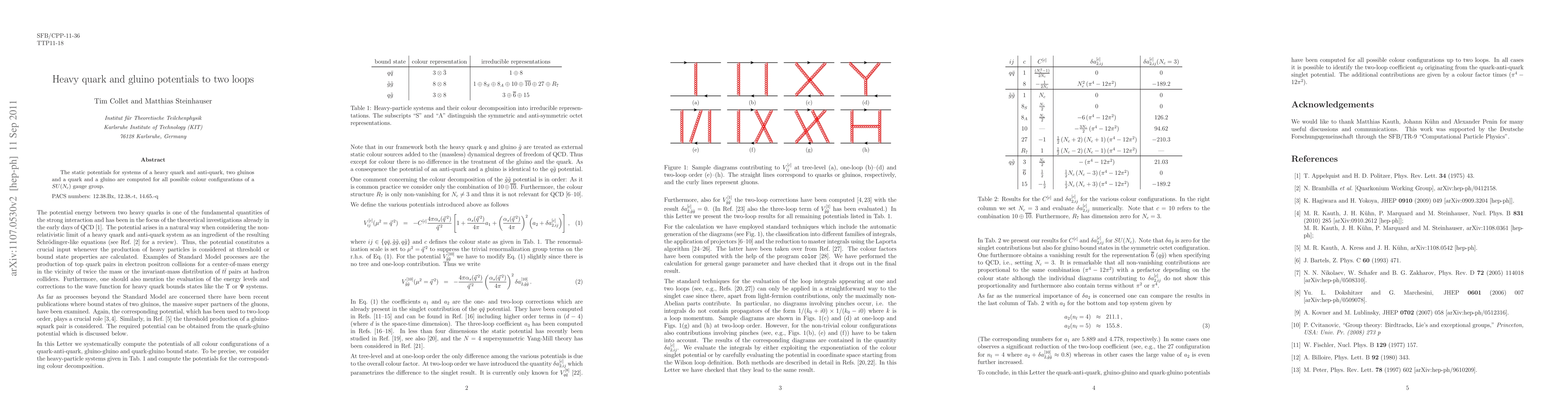 Summary: This paper computes the static potentials for heavy quark-antiquark pairs, gluino pairs, and quark-gluino systems to two-loop order in an $SU(N_c)$ gauge theory, considering all possible color configurations. The results provide insights into the non-perturbative aspects of strong interactions.