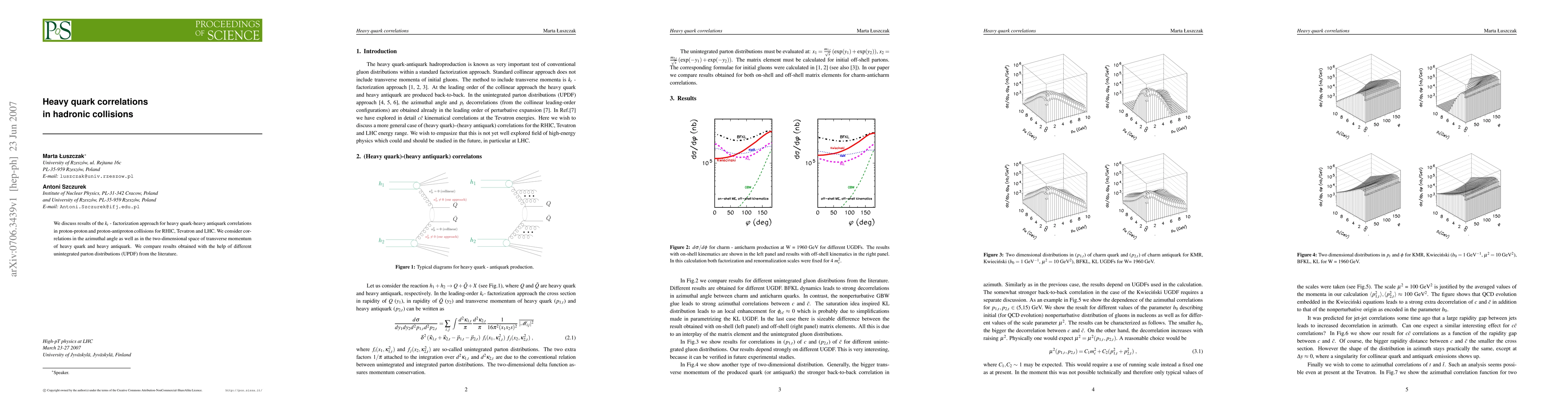 We discuss results of the $k_t$ - factorization approach for heavy quark-heavy antiquark correlations in proton-proton and proton-antiproton collisions for RHIC, Tevatron and LHC. We consider correlations in the azimuthal angle as well as in the two-dimensional space of transverse momentum of heavy quark and heavy antiquark. We compare results obtained with the help of different unintegrated parton distributions (UPDF) from the literature.