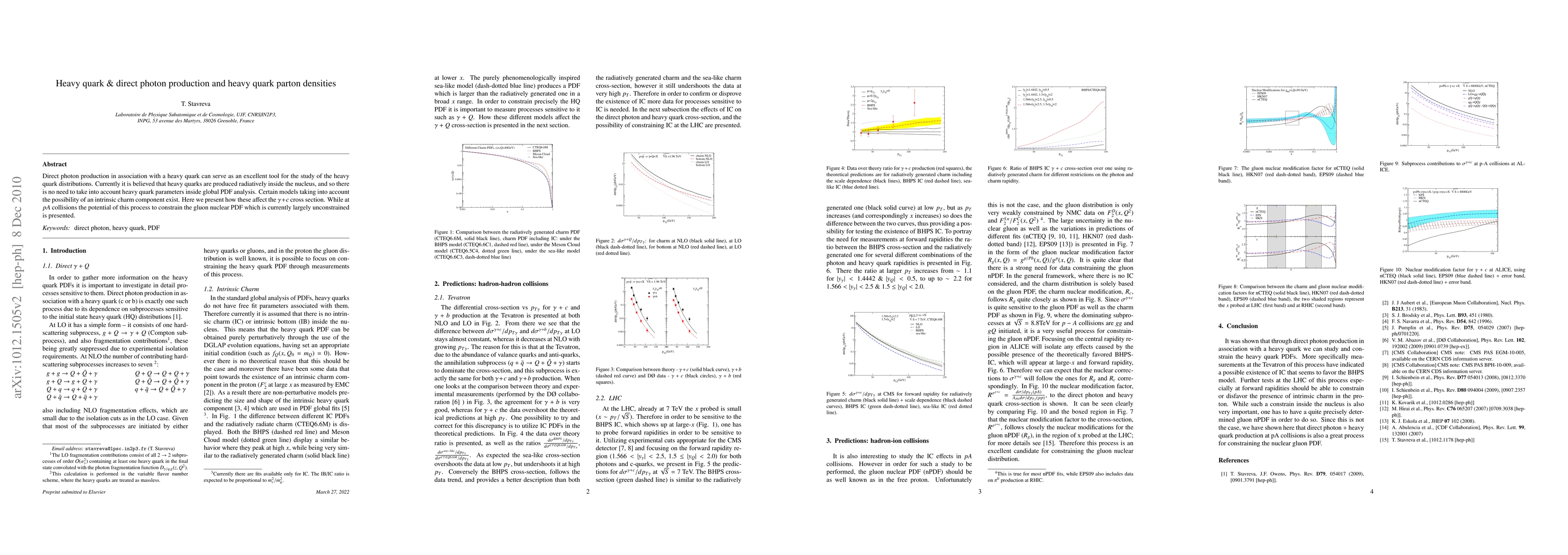 Direct photon production in association with a heavy quark can serve as an excellent tool for the study of the heavy quark distributions. Currently it is believed that heavy quarks are produced radiatively inside the nucleon, and so there is no need to take into account heavy quark parameters inside global PDF analyses. Certain models taking into account the possibility of an intrinsic charm component exist. Here we present how these affect the \gamma + c cross section. While at pA collisions the potential of this process to constrain the gluon nuclear PDF which is currently largely unconstrained is presented.