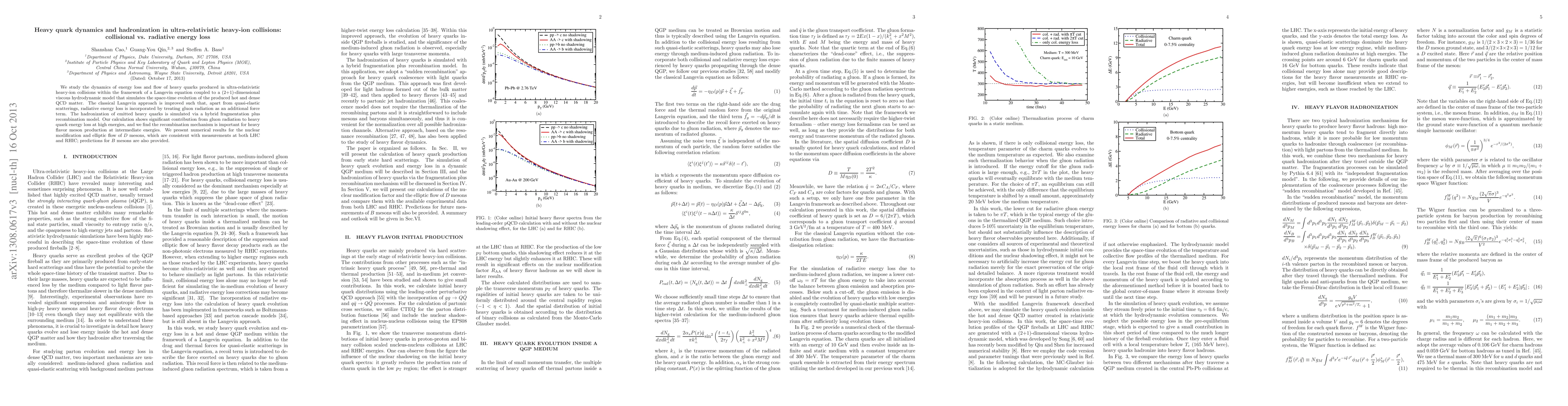 This paper investigates the energy loss mechanisms of heavy quarks in ultra-relativistic heavy-ion collisions, incorporating both collisional and radiative effects using a Langevin equation and a hydrodynamic model. It finds significant radiative energy loss and highlights the importance of recombination for hadronization, providing results consistent with experimental data on D mesons and predictions for B mesons.