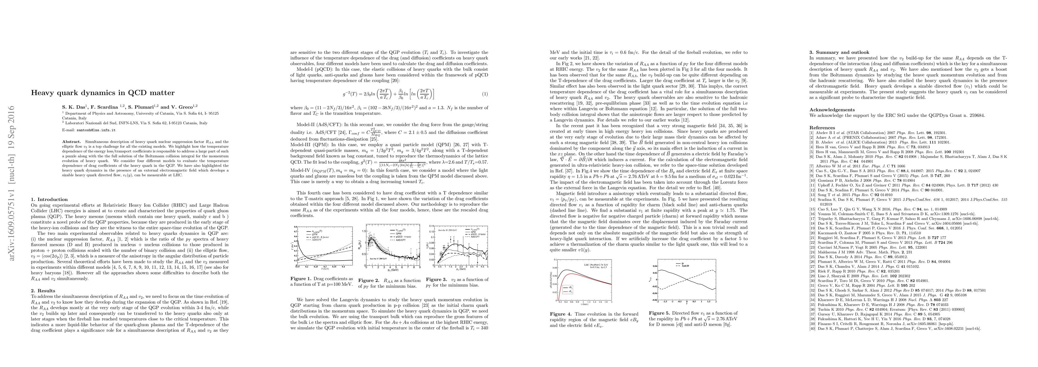 This paper investigates the dynamics of heavy quarks in QCD matter, focusing on their nuclear suppression factor and elliptic flow. It highlights the role of temperature-dependent energy loss and transport coefficients in addressing these phenomena, employing four models to evaluate drag coefficients in quark-gluon plasma. Additionally, it explores heavy quark dynamics under an external electromagnetic field, predicting a measurable directed flow at LHC.