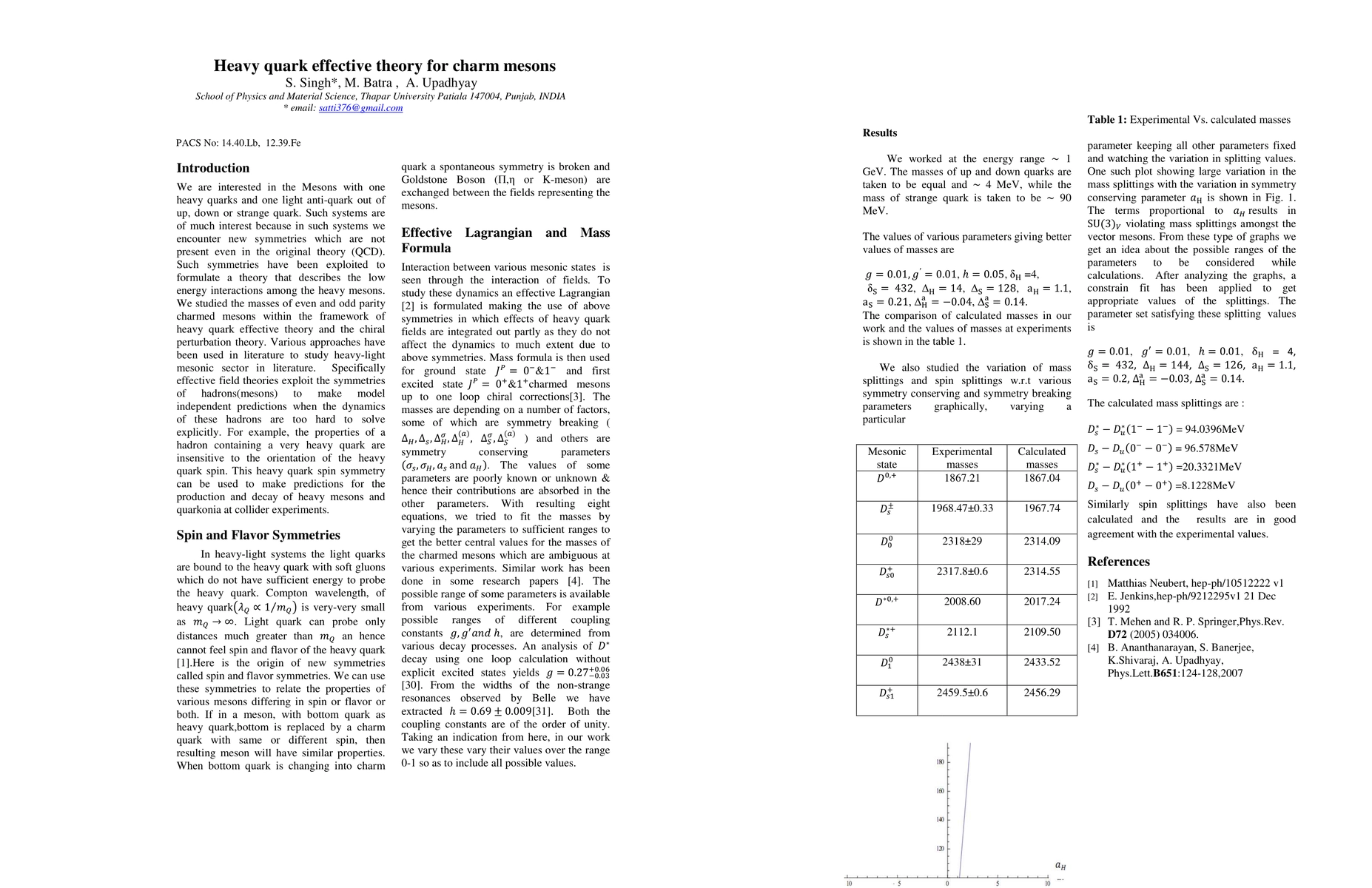This paper employs heavy quark effective theory and chiral perturbation theory to analyze the masses and splittings of charmed mesons, providing a comprehensive mass formula for low-lying charm meson states and examining how mass and spin splittings vary with symmetry-conserving and symmetry-breaking parameters.