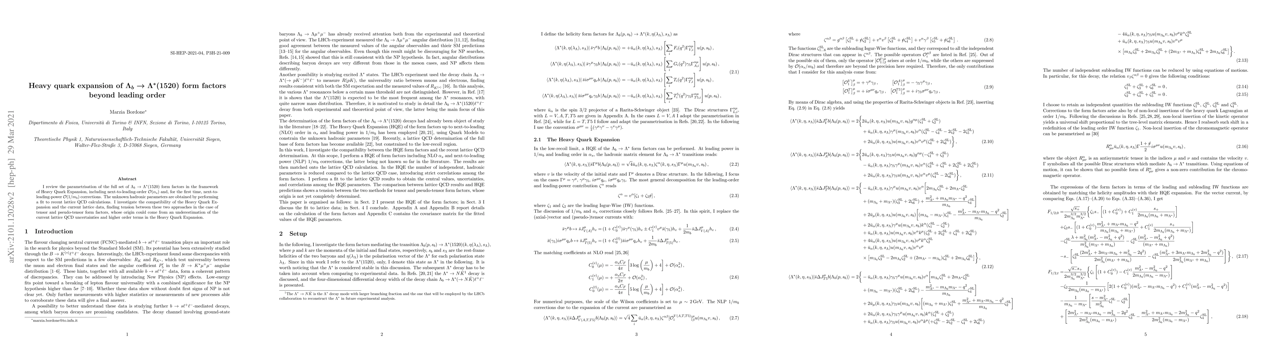 This paper reviews the parametrisation of $\Lambda_b\to\Lambda^*(1520)$ form factors using Heavy Quark Expansion, incorporating next-to-leading-order and next-to-leading-power corrections. It finds tension between Heavy Quark Expansion and lattice QCD data for tensor and pseudo-tensor form factors, potentially due to underestimated uncertainties and higher-order terms.