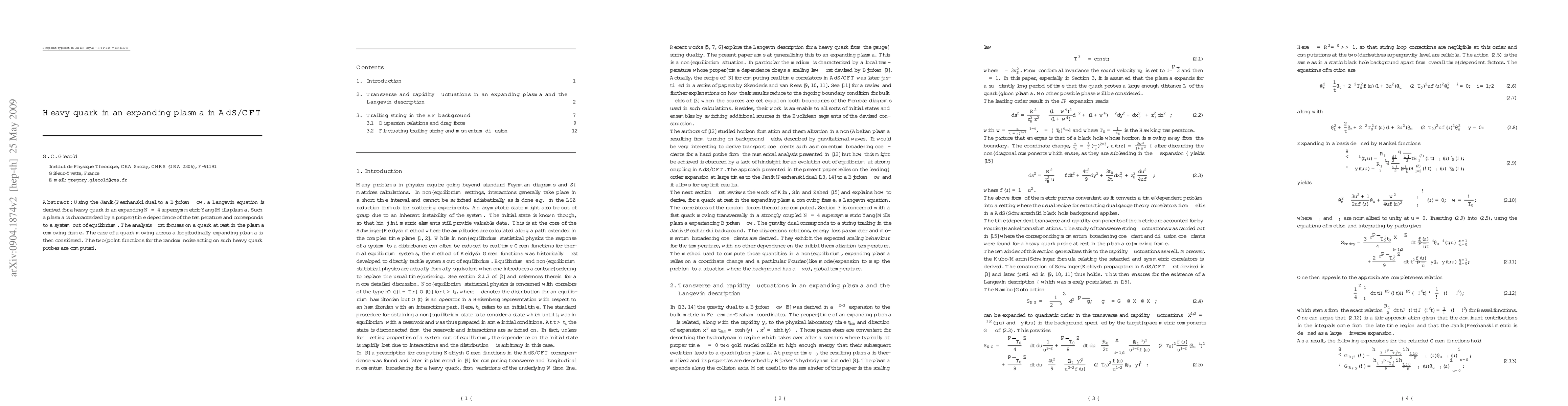 This paper derives a Langevin equation for a heavy quark in an expanding N = 4 supersymmetric Yang-Mills plasma using the Janik-Peschanski dual to Bjorken flow, analyzing both stationary and moving quarks, and computes the two-point functions for the random noise acting on these probes.