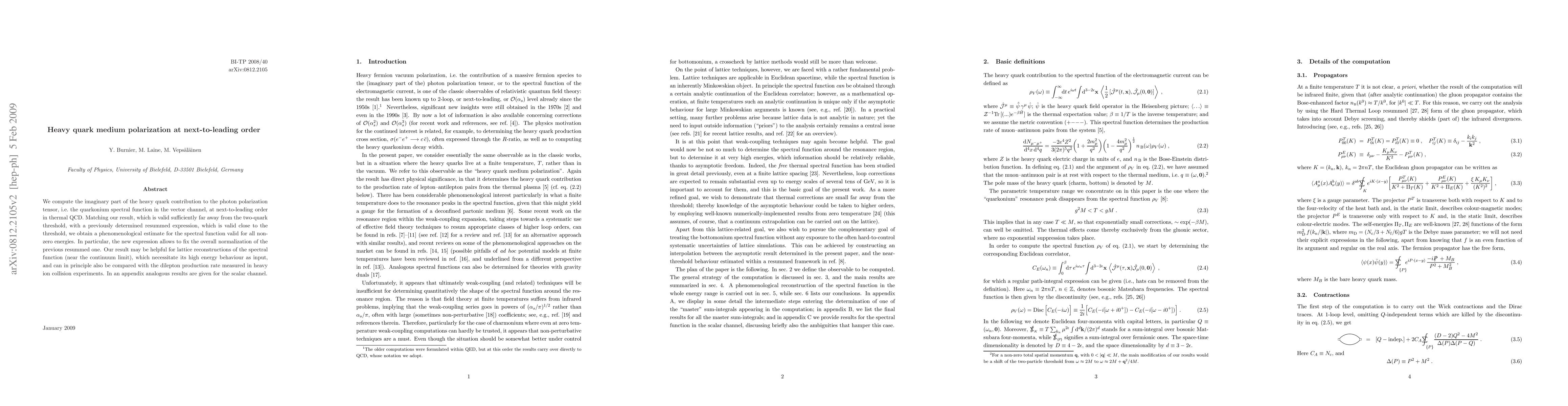 This paper computes the imaginary part of the heavy quark contribution to the photon polarization tensor at next-to-leading order in thermal QCD, providing a comprehensive spectral function for quarkonium. The results are matched with previous resummed expressions to cover a wide energy range, aiding lattice reconstructions and potentially correlating with dilepton production rates in heavy ion collisions.