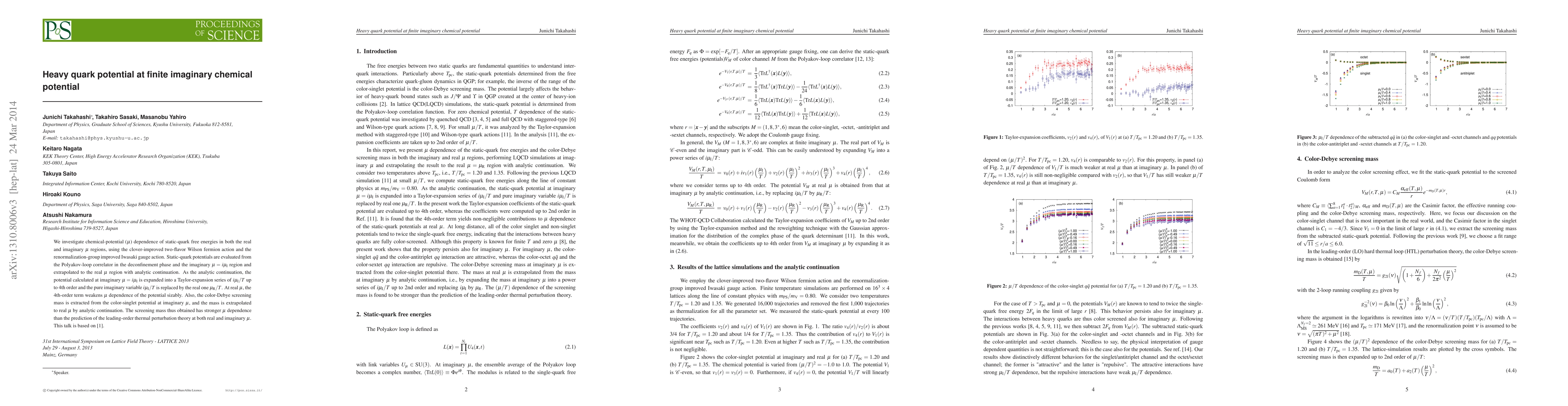 This paper investigates the static-quark free energies and potentials under both real and imaginary chemical potentials using lattice QCD methods. The study finds that the 4th-order term in the Taylor expansion of the imaginary chemical potential significantly weakens the potential's dependence on real chemical potential, while the color-Debye screening mass shows stronger $\mu$ dependence than predicted by leading-order thermal perturbation theory.