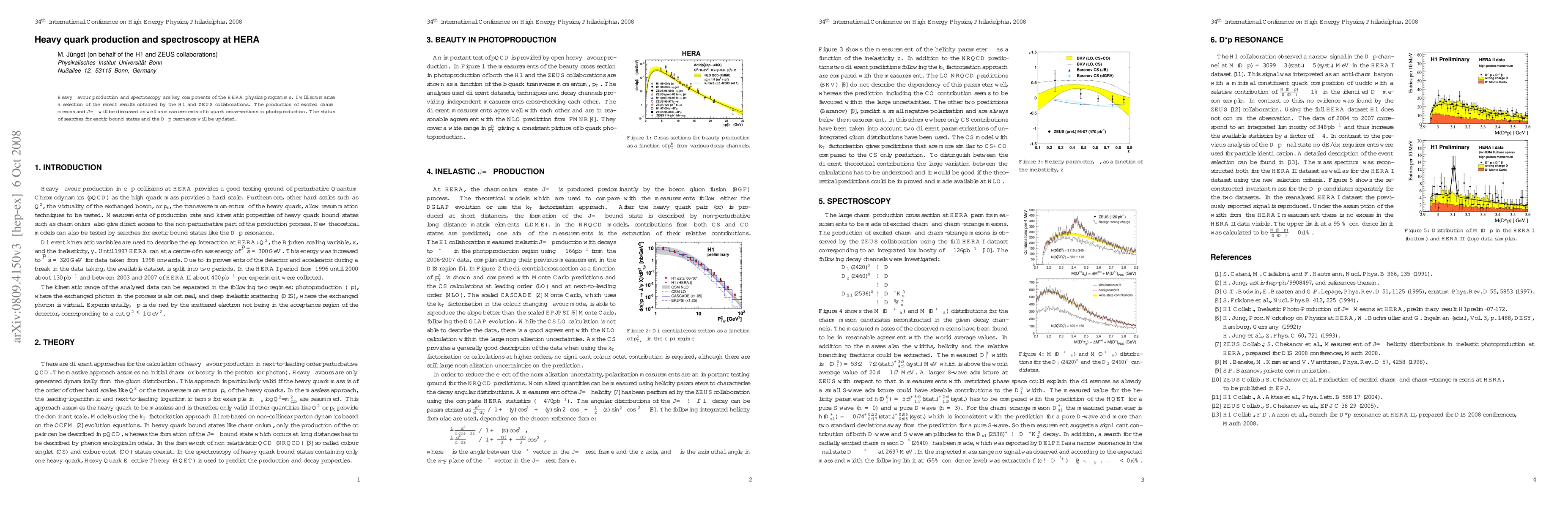 This paper summarizes recent findings from the H1 and ZEUS collaborations on heavy quark production and spectroscopy at HERA, focusing on excited charm mesons, J/psi, and b quark cross-sections in photoproduction, along with updates on searches for exotic bound states and the D*p resonance.