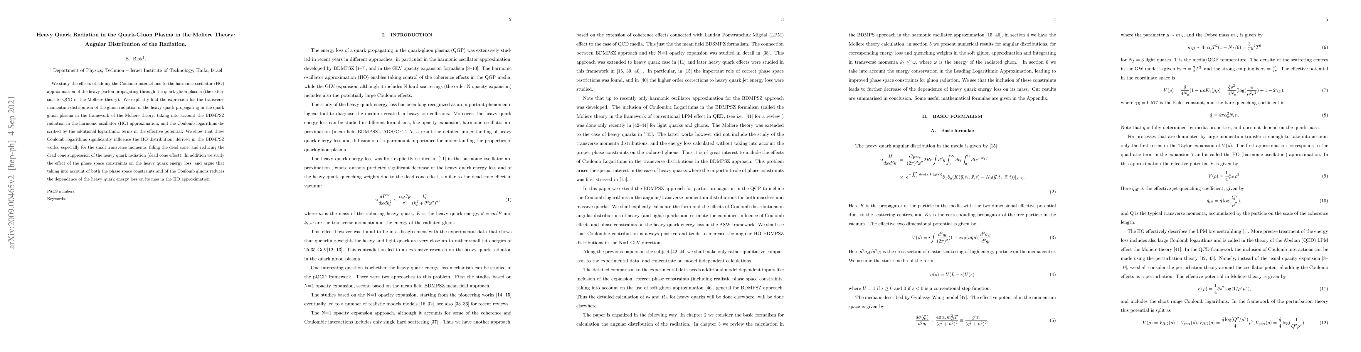 We study the effects of adding the Coulomb interactions to the harmonic oscillator (HO) approximation of the heavy parton propagating through the quark-gluon plasma (the extension to QCD of the Molliere theory). We explicitly find the expression for the transverse momentum distribution of the gluon radiation of the heavy quark propagating in the quark gluon plasma in the framework of the Moliere theory, taking into account the BDMPSZ radiation in the harmonic oscillator (HO) approximation, and the Coulomb logarithms described by the additional logarithmic terms in the effective potential. We show that these Coulomb logarithms significantly influence the HO distribution, derived in the BDMPSZ works, especially for the small transverse momenta, filling the dead cone, and reducing the dead cone suppression of the heavy quark radiation (dead cone effect). In addition we study the effect of the phase space constraints on the heavy quark energy loss, and argue that taking into account of both the phase space constraints and of the Coulomb gluons reduces the dependence of the heavy quark energy loss on its mas in the HO approximation.