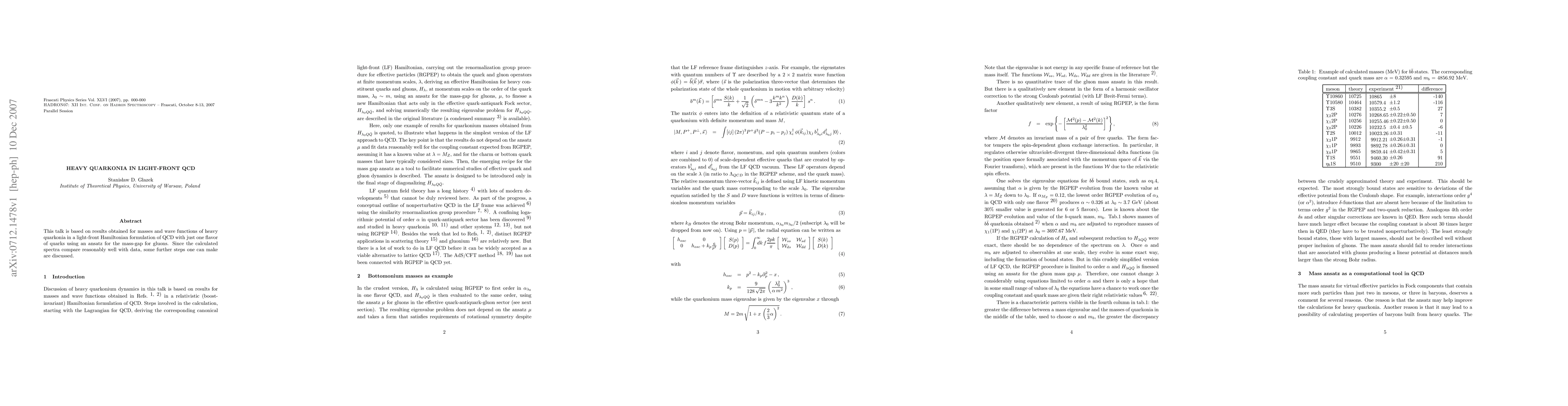 This talk is based on results obtained for masses and wave functions of heavy quarkonia in a light-front Hamiltonian formulation of QCD with just one flavor of quarks using an ansatz for the mass-gap for gluons. Since the calculated spectra compare reasonably well with data, some further steps one can make are discussed.