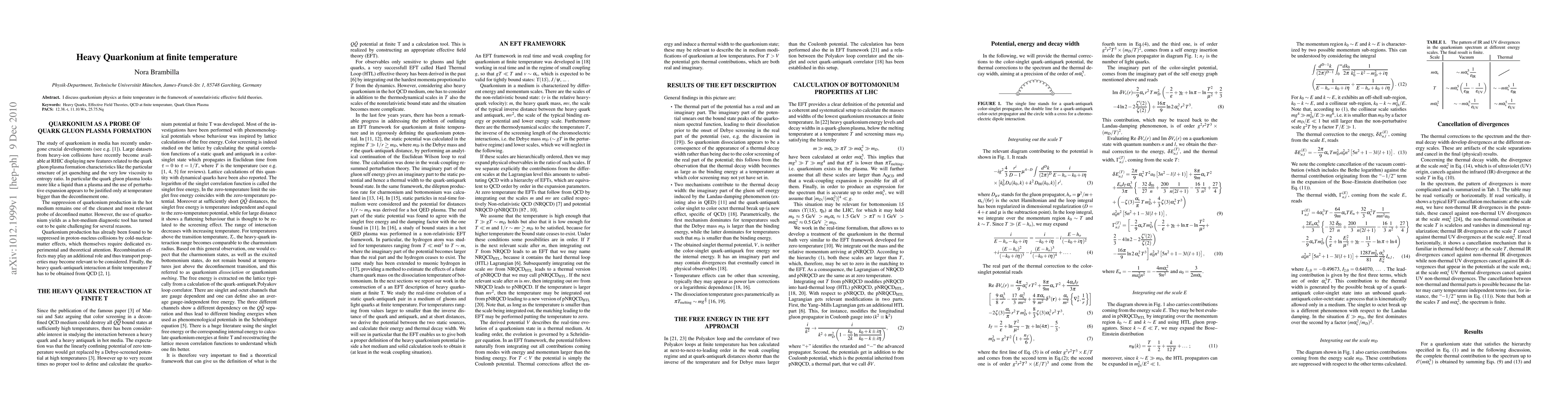 I discuss quarkonium physics at finite temperature in the framework of nonrelativistic effective field theories.