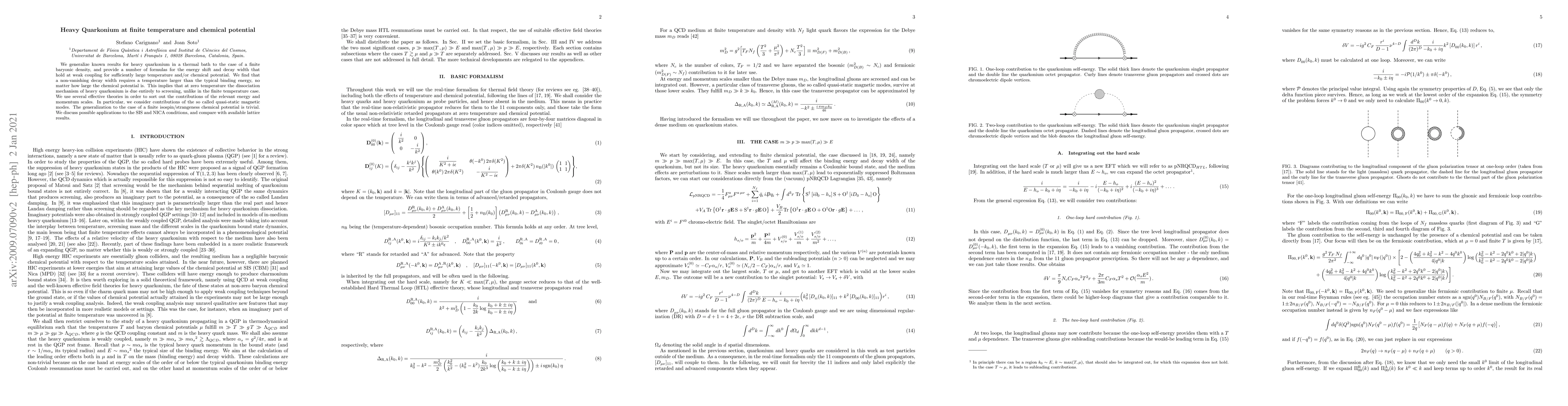 We generalize known results for heavy quarkonium in a thermal bath to the case of a finite baryonic density, and provide a number of formulas for the energy shift and decay width that hold at weak coupling for sufficiently large temperature and/or chemical potential. We find that a non-vanishing decay width requires a temperature larger than the typical binding energy, no matter how large the chemical potential is. This implies that at zero temperature the dissociation mechanism of heavy quarkonium is due entirely to screening, unlike in the finite temperature case. We use several effective theories in order to sort out the contributions of the relevant energy and momentum scales. In particular, we consider contributions of the so called quasi-static magnetic modes. The generalization to the case of a finite isospin/strangeness chemical potential is trivial. We discuss possible applications to the SIS and NICA conditions, and compare with available lattice results.