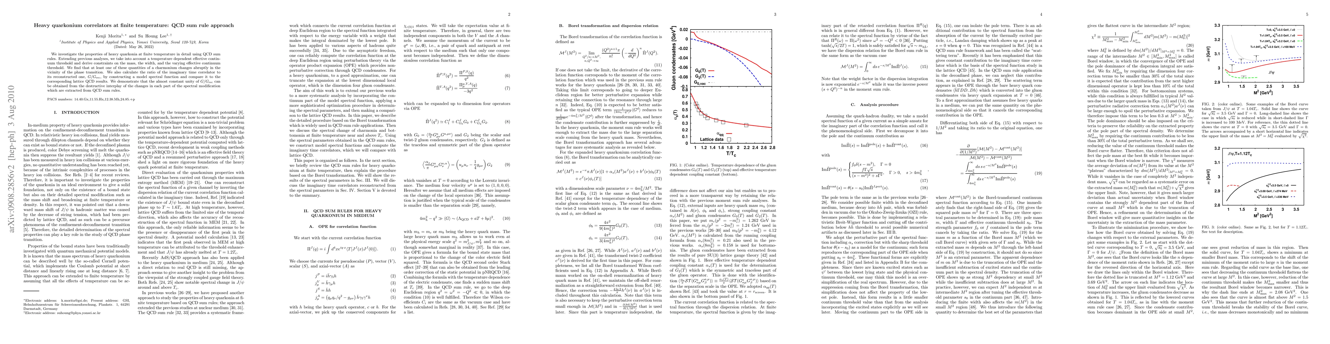 We investigate the properties of heavy quarkonia at finite temperature in detail using QCD sum rules. Extending previous analyses, we take into account a temperature dependent effective continuum threshold and derive constraints on the mass, the width, and the varying effective continuum threshold. We find that at least one of these quantities of a charmonium changes abruptly in the vicinity of the phase transition. We also calculate the ratio of the imaginary time correlator to its reconstructed one, $G/G_{\text{rec}}$, by constructing a model spectral function and compare it to the corresponding lattice QCD results. We demonstrate that the almost constant unity of $G/G_{\text{rec}}$ can be obtained from the destructive interplay of the changes in each part of the spectral modification which are extracted from QCD sum rules.