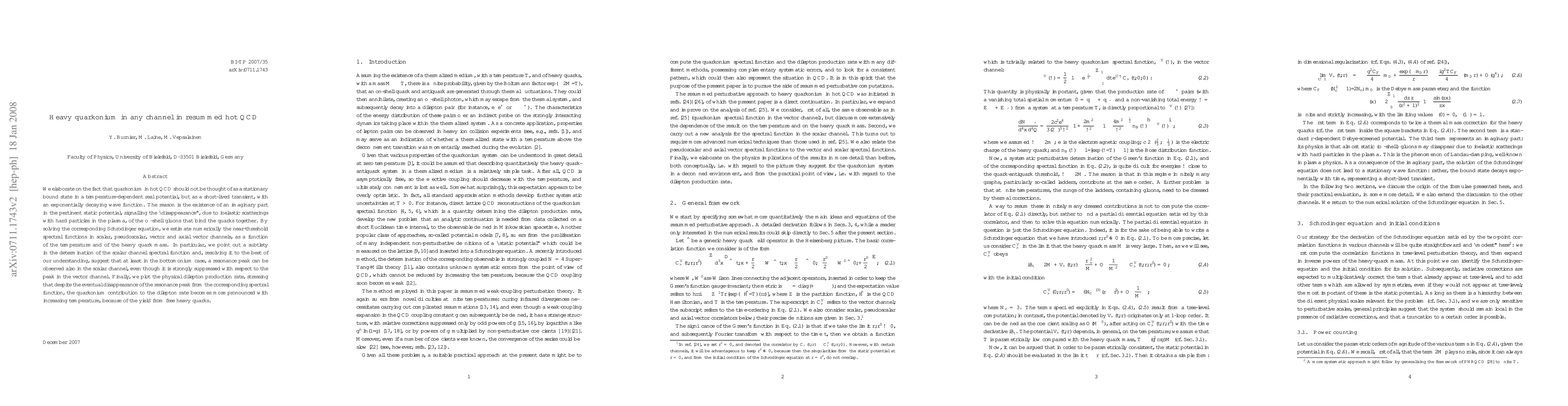 We elaborate on the fact that quarkonium in hot QCD should not be thought of as a stationary bound state in a temperature-dependent real potential, but as a short-lived transient, with an exponentially decaying wave function. The reason is the existence of an imaginary part in the pertinent static potential, signalling the ``disappearance'', due to inelastic scatterings with hard particles in the plasma, of the off-shell gluons that bind the quarks together. By solving the corresponding Schr\"odinger equation, we estimate numerically the near-threshold spectral functions in scalar, pseudoscalar, vector and axial vector channels, as a function of the temperature and of the heavy quark mass. In particular, we point out a subtlety in the determination of the scalar channel spectral function and, resolving it to the best of our understanding, suggest that at least in the bottomonium case, a resonance peak can be observed also in the scalar channel, even though it is strongly suppressed with respect to the peak in the vector channel. Finally, we plot the physical dilepton production rate, stressing that despite the eventual disappearance of the resonance peak from the corresponding spectral function, the quarkonium contribution to the dilepton rate becomes more pronounced with increasing temperature, because of the yield from free heavy quarks.