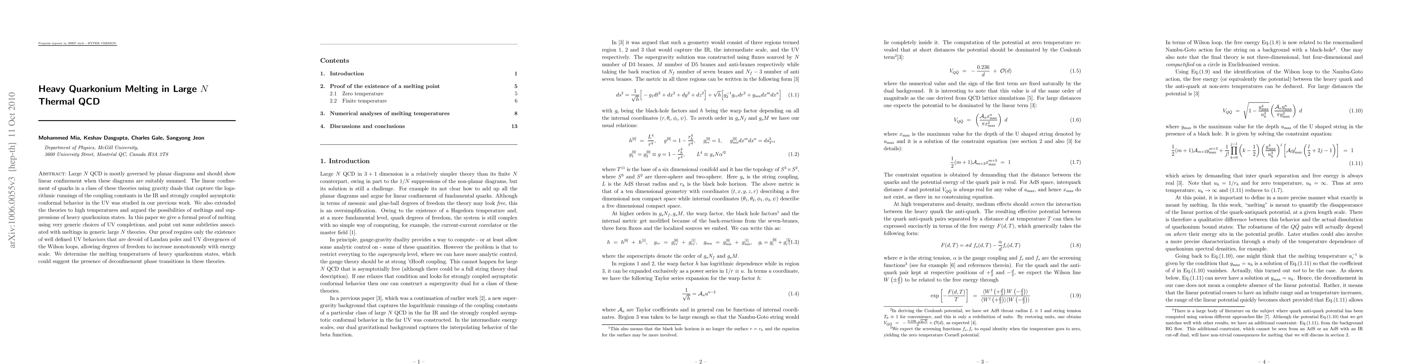 This paper provides a formal proof for the melting of heavy quarkonium states in large N thermal QCD, demonstrating that the linear confinement observed at low temperatures breaks down at high temperatures. The study highlights the importance of well-defined UV behaviors and the potential for deconfinement phase transitions in these theories.