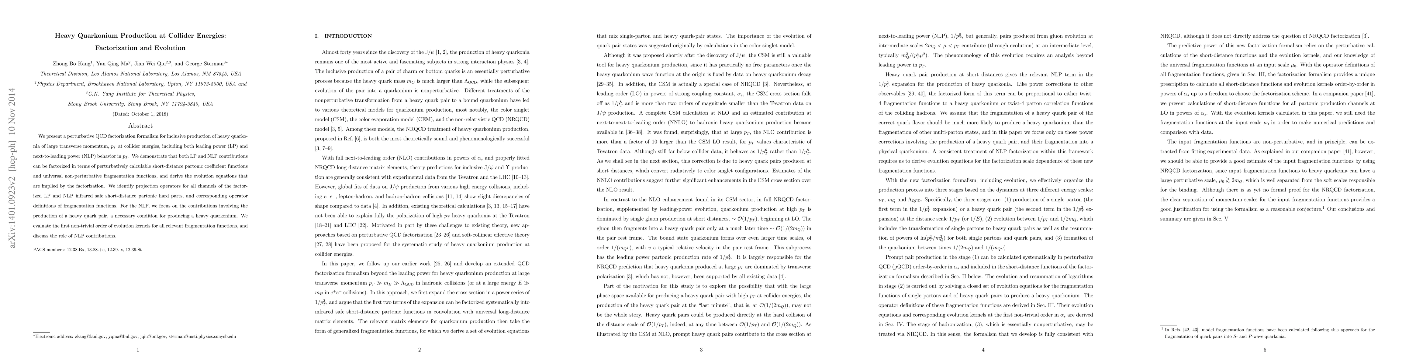 This paper develops a factorization formalism for the inclusive production of heavy quarkonia at collider energies, incorporating both leading and next-to-leading power behaviors in transverse momentum. It identifies perturbative and non-perturbative components and derives evolution equations, evaluating the first non-trivial order of evolution kernels for fragmentation functions.