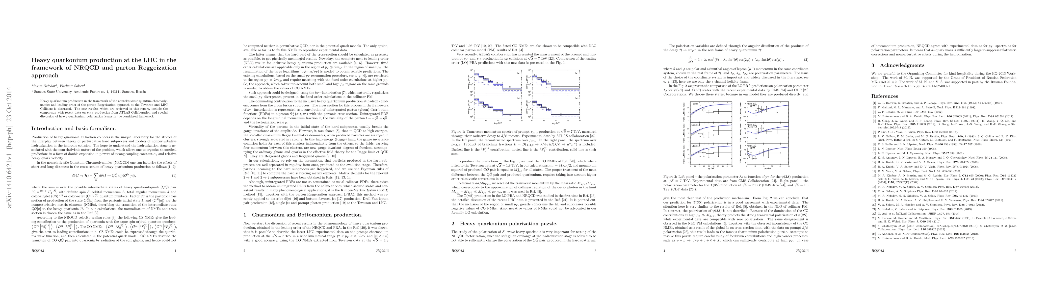 This paper examines heavy quarkonium production using nonrelativistic quantum chromodynamics (NRQCD) and parton Reggeization at the LHC, comparing results with recent ATLAS data on chi_{c1,c2} production and discussing heavy quarkonium polarization.