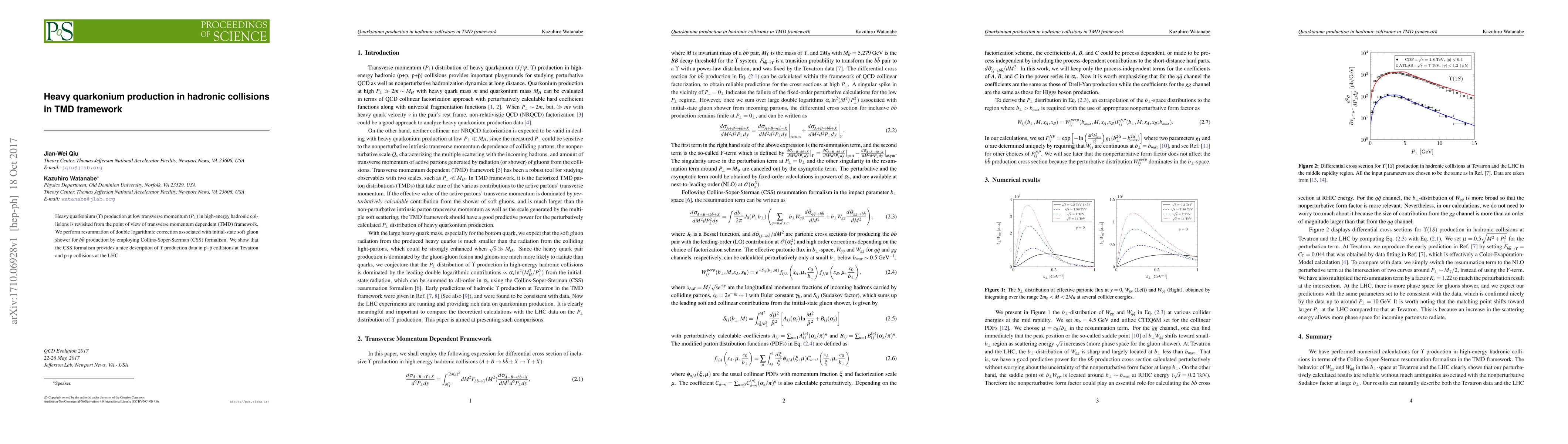 Heavy quarkonium ($\Upsilon$) production at low transverse momentum ($P_\perp$) in high-energy hadronic collisions is revisited from the point of view of transverse momentum dependent (TMD) framework. We perform resummation of double logarithmic correction associated with initial-state soft gluon shower for $b\bar b$ production by employing Collins-Soper-Sterman (CSS) formalism. We show that the CSS formalism provides a nice description of $\Upsilon$ production data in p+$\rm\bar{p}$ collisions at Tevatron and p+p collisions at the LHC.