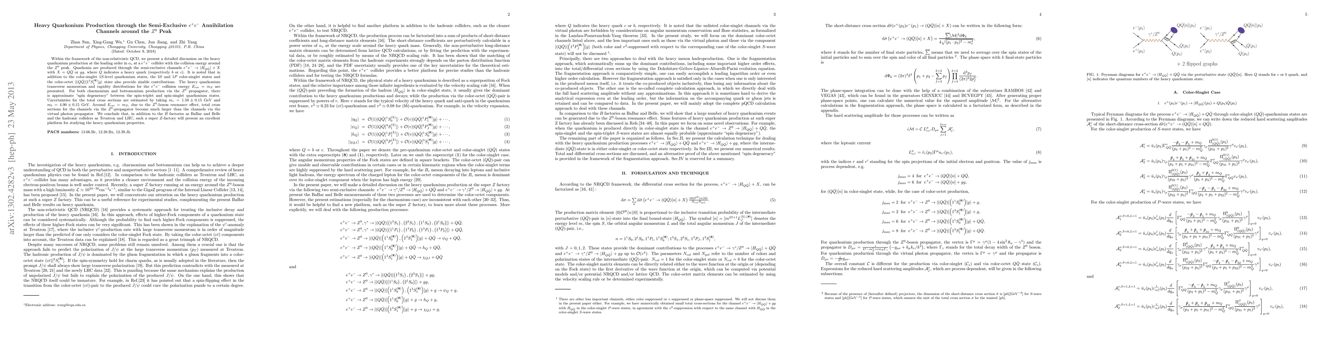 This paper explores heavy quarkonium production via semi-exclusive $e^+ e^-$ annihilation channels around the $Z^0$ peak, using non-relativistic QCD. It highlights significant contributions from various quarkonium states and notes enhanced total cross sections due to the $Z^0$-boson resonance effect, suggesting a super $Z$-factory as an excellent platform for studying these particles.