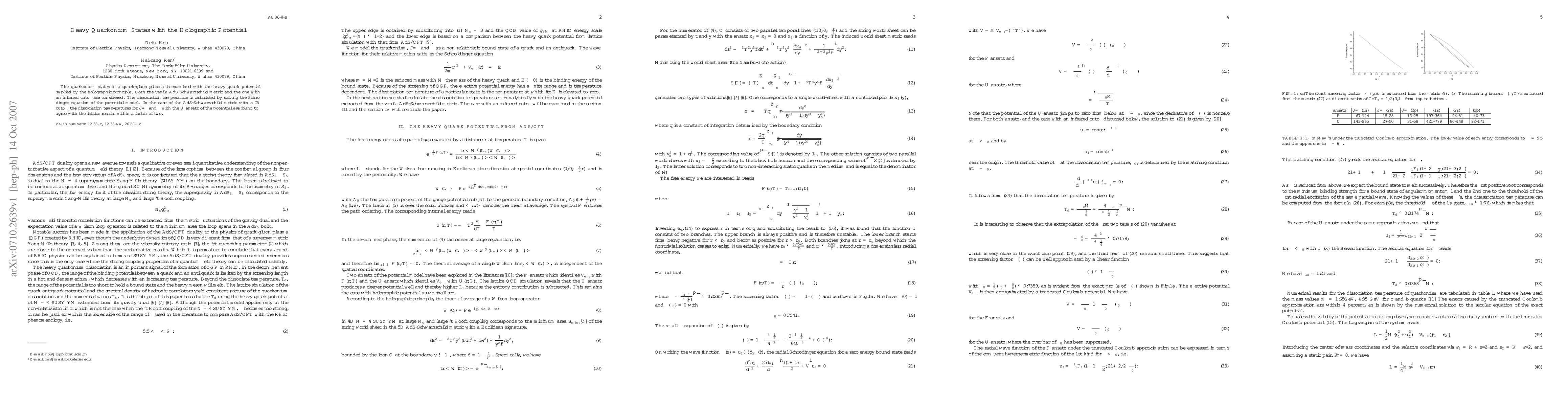 The paper presents a detailed analysis of heavy quarkonium states using the holographic potential, calculating dissociation temperatures with both vanilla AdS-Schwarzschild and infrared-cutoff metrics, and comparing results with lattice QCD simulations.