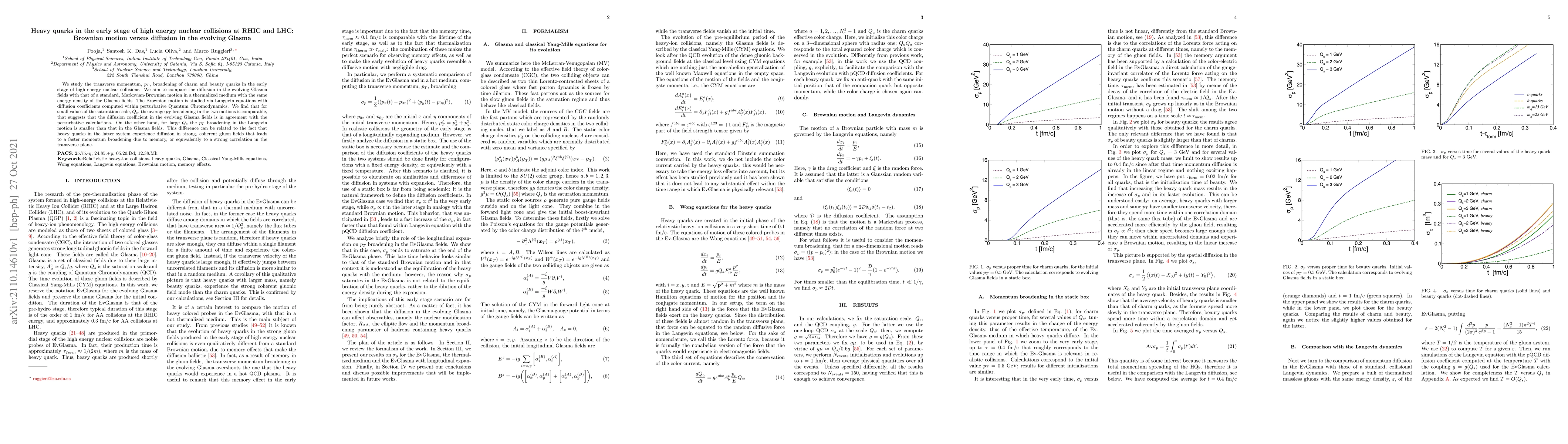 We study the transverse momentum, $p_T$, broadening of charm and beauty quarks in the early stage of high energy nuclear collisions. We aim to compare the diffusion in the evolving Glasma fields with that of a standard, Markovian-Brownian motion in a thermalized medium with the same energy density of the Glasma fields. The Brownian motion is studied via Langevin equations with diffusion coefficients computed within perturbative Quantum Chromodynamics. We find that for small values of the saturation scale, $Q_s$, the average $p_T$ broadening in the two motions is comparable, that suggests that the diffusion coefficient in the evolving Glasma fields is in agreement with the perturbative calculations. On the other hand, for large $Q_s$ the $p_T$ broadening in the Langevin motion is smaller than that in the Glasma fields. This difference can be related to the fact that heavy quarks in the latter system experience diffusion in strong, coherent gluon fields that leads to a faster momentum broadening due to memory, or equivalently to a strong correlation in the transverse plane.