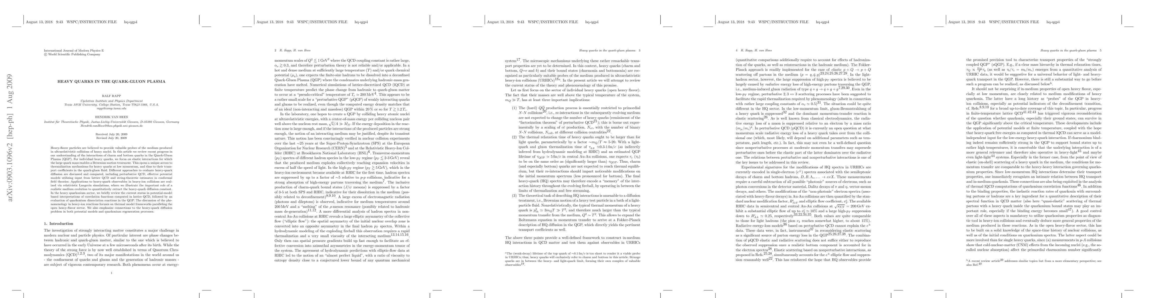 This paper reviews recent advancements in understanding charm and bottom quarks' interactions within the Quark-Gluon Plasma, focusing on their elastic interactions and Brownian motion for low momentum. It discusses various methods for evaluating heavy-quark diffusion and their implications for transport coefficients, alongside applications to heavy-ion collision observables.