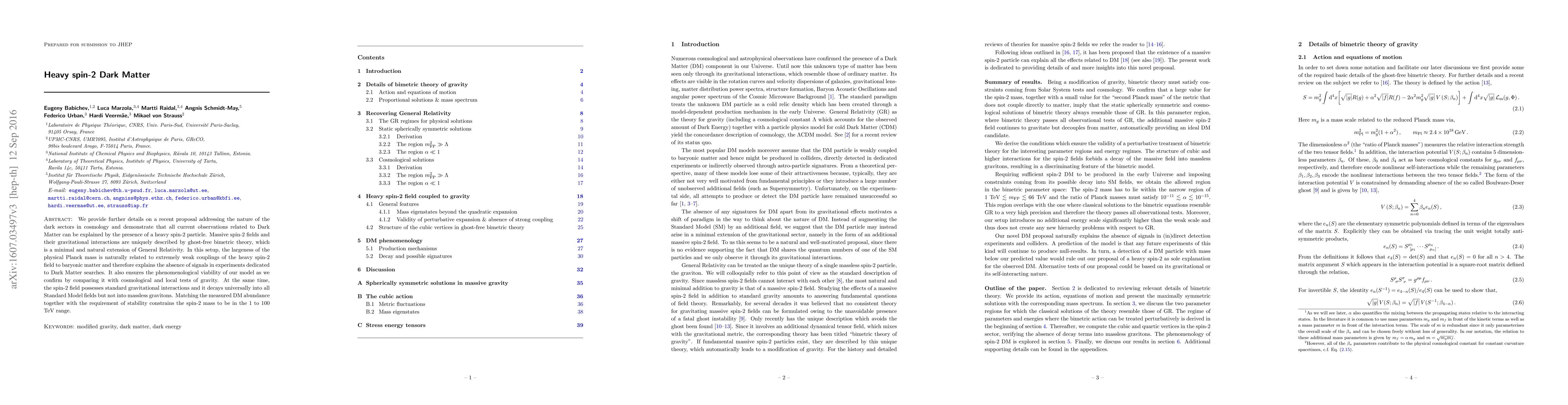 We provide further details on a recent proposal addressing the nature of the dark sectors in cosmology and demonstrate that all current observations related to Dark Matter can be explained by the presence of a heavy spin-2 particle. Massive spin-2 fields and their gravitational interactions are uniquely described by ghost-free bimetric theory, which is a minimal and natural extension of General Relativity. In this setup, the largeness of the physical Planck mass is naturally related to extremely weak couplings of the heavy spin-2 field to baryonic matter and therefore explains the absence of signals in experiments dedicated to Dark Matter searches. It also ensures the phenomenological viability of our model as we confirm by comparing it with cosmological and local tests of gravity. At the same time, the spin-2 field possesses standard gravitational interactions and it decays universally into all Standard Model fields but not into massless gravitons. Matching the measured DM abundance together with the requirement of stability constrains the spin-2 mass to be in the 1 to 100 TeV range.