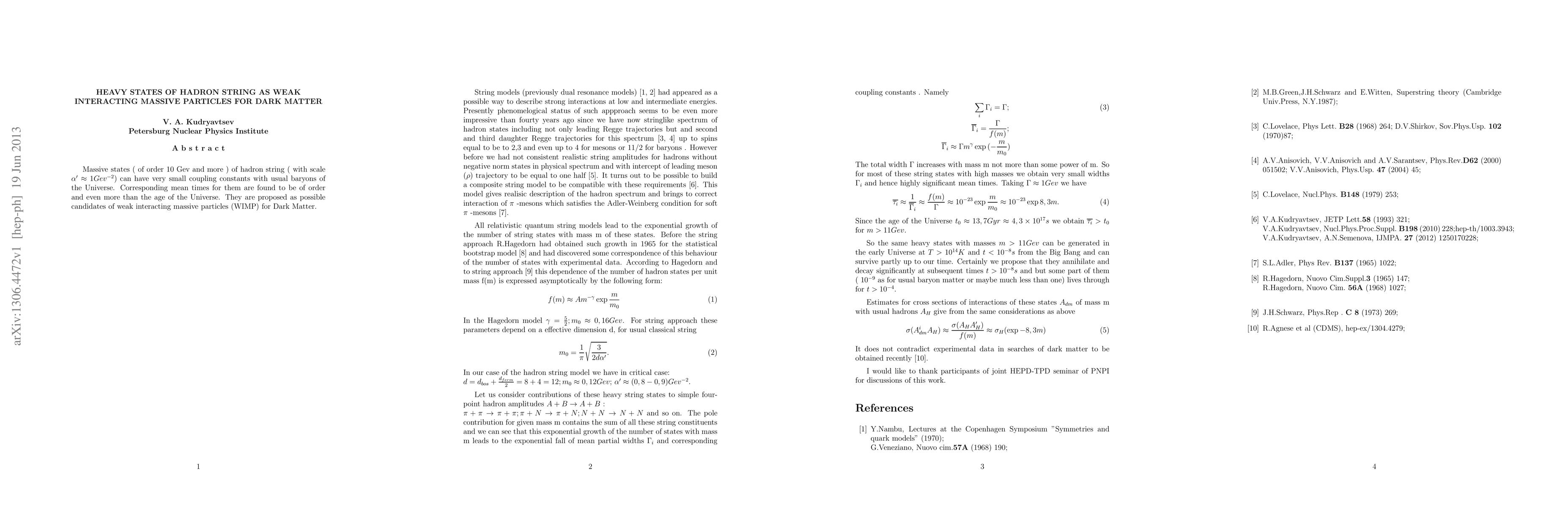 Heavy hadron strings with scales of 1 GeV can be weakly interacting massive particles for Dark Matter, with mean timescales exceeding the age of the Universe.