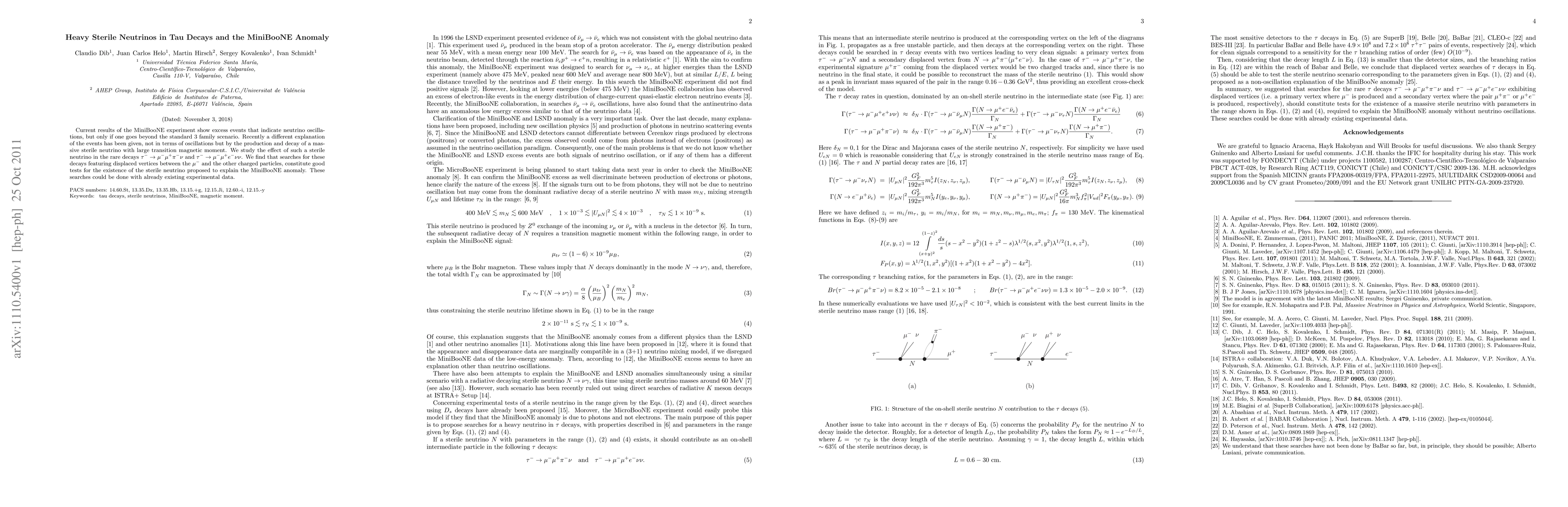 This paper explores the potential role of heavy sterile neutrinos in explaining the MiniBooNE anomaly through their impact on rare tau decay processes. It proposes that displaced vertices in specific tau decay channels could serve as a test for the existence of these sterile neutrinos.