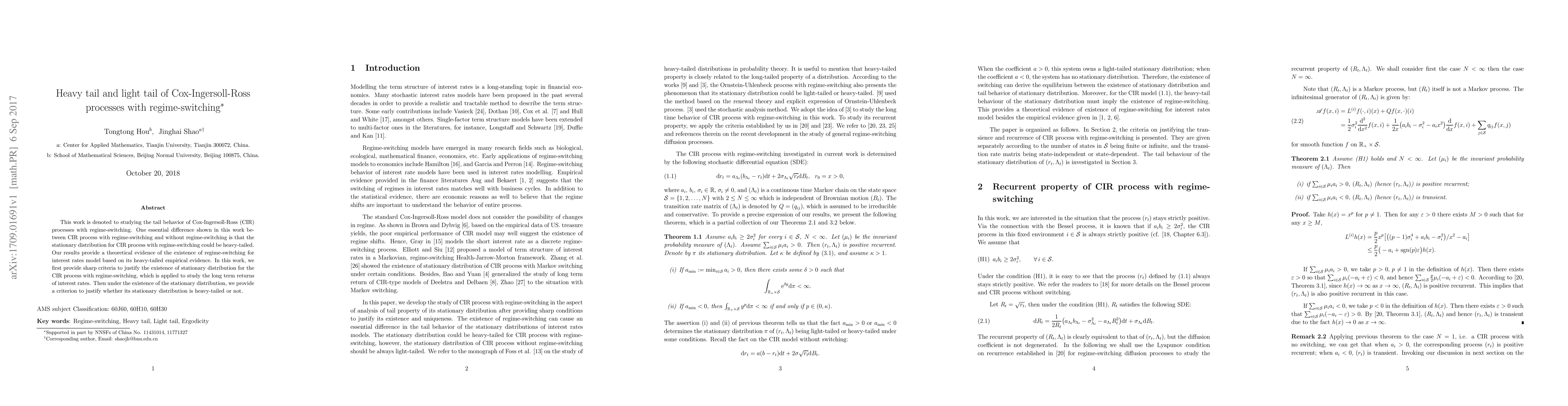 This paper investigates the tail behavior of regime-switching Cox-Ingersoll-Ross (CIR) processes, demonstrating that the stationary distribution can exhibit heavy tails. It provides theoretical evidence for the existence of regime-switching in interest rate models based on empirical heavy-tail observations.
