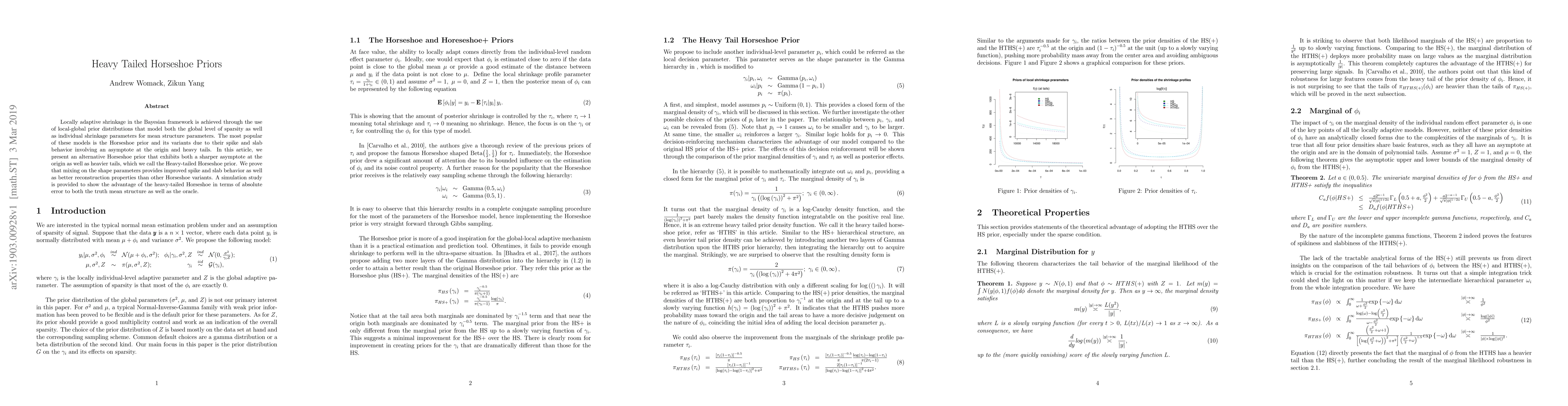 This paper introduces the Heavy-tailed Horseshoe prior, an alternative to the standard Horseshoe prior, which offers sharper asymptote and heavier tails for better local-global shrinkage in Bayesian models. Simulation results show its improved spike and slab behavior and better reconstruction accuracy.