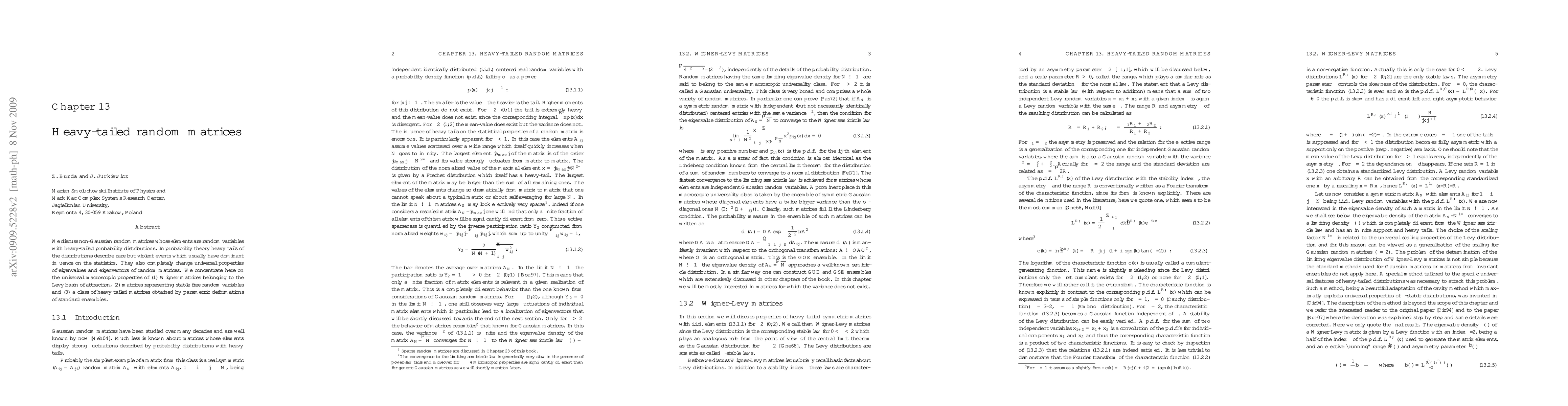 Summary: This paper investigates non-Gaussian random matrices with heavy-tailed distributions, emphasizing their unique macroscopic properties, such as those of Wigner matrices in the Lévy basin of attraction, stable free random variables, and parametric deformations of standard ensembles. It highlights how heavy tails significantly alter the statistical and universal properties of eigenvalues and eigenvectors.