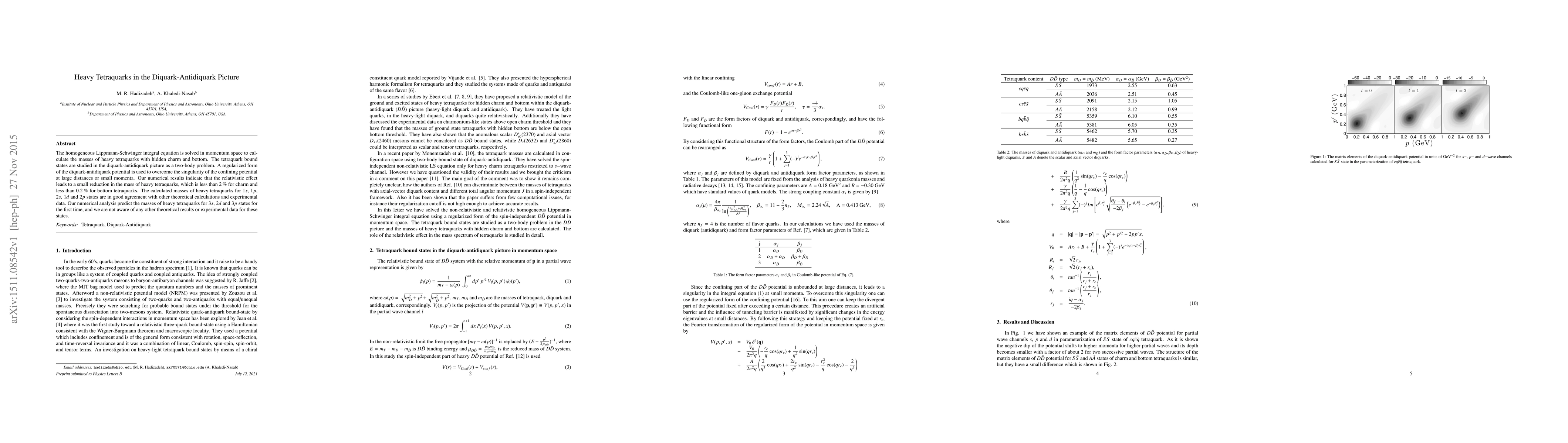 Development and application of a regularized diquark-antidiquark potential within the Lippmann-Schwinger equation framework to calculate heavy tetraquark masses.