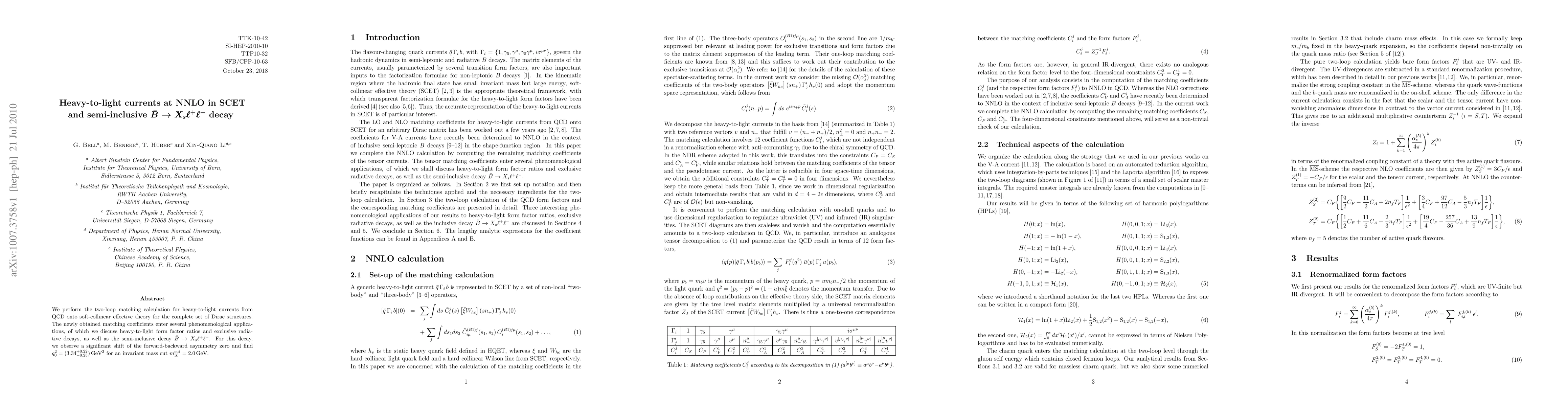 We perform the two-loop matching calculation for heavy-to-light currents from QCD onto soft-collinear effective theory for the complete set of Dirac structures. The newly obtained matching coefficients enter several phenomenological applications, of which we discuss heavy-to-light form factor ratios and exclusive radiative decays, as well as the semi-inclusive decay anti-B ---> X(s) l+ l-. For this decay, we observe a significant shift of the forward-backward asymmetry zero and find q_0^2 = (3.34 +0.22 -0.25) GeV^2 for an invariant mass cut m_X^cut=2.0 GeV.