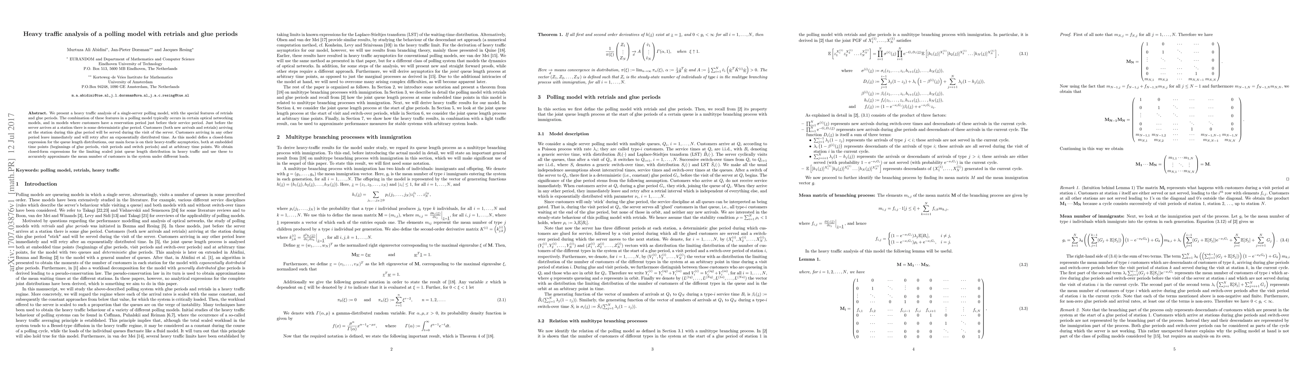 The paper presents a heavy traffic analysis of a single-server polling model with retrials and glue periods, focusing on asymptotic behavior at embedded time points and arbitrary time points.