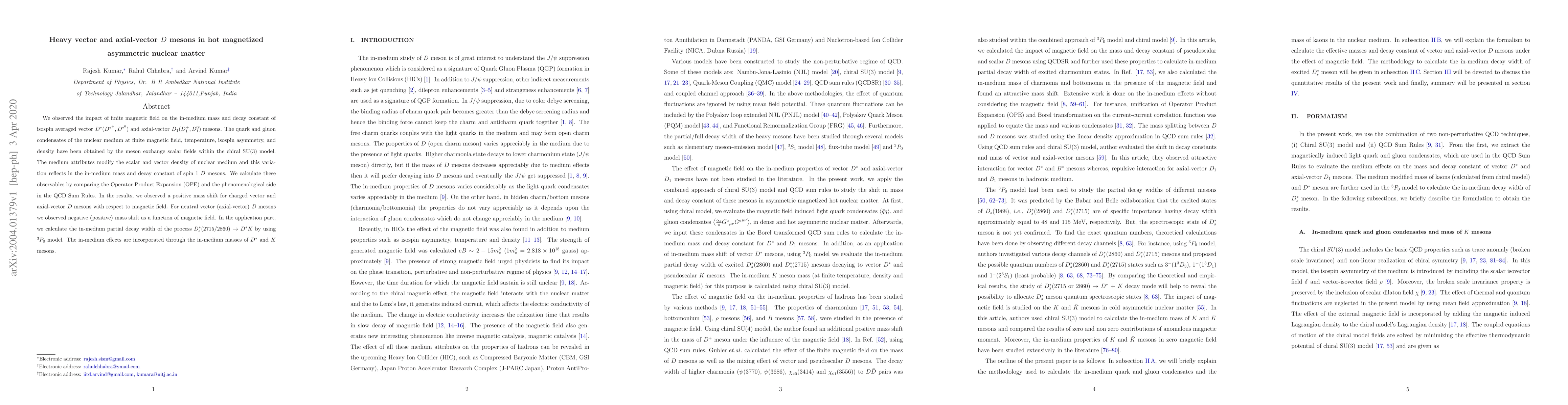 A new approach to calculating the mass of D-mesons in hot and dense matter was developed, incorporating both experimental and theoretical results.