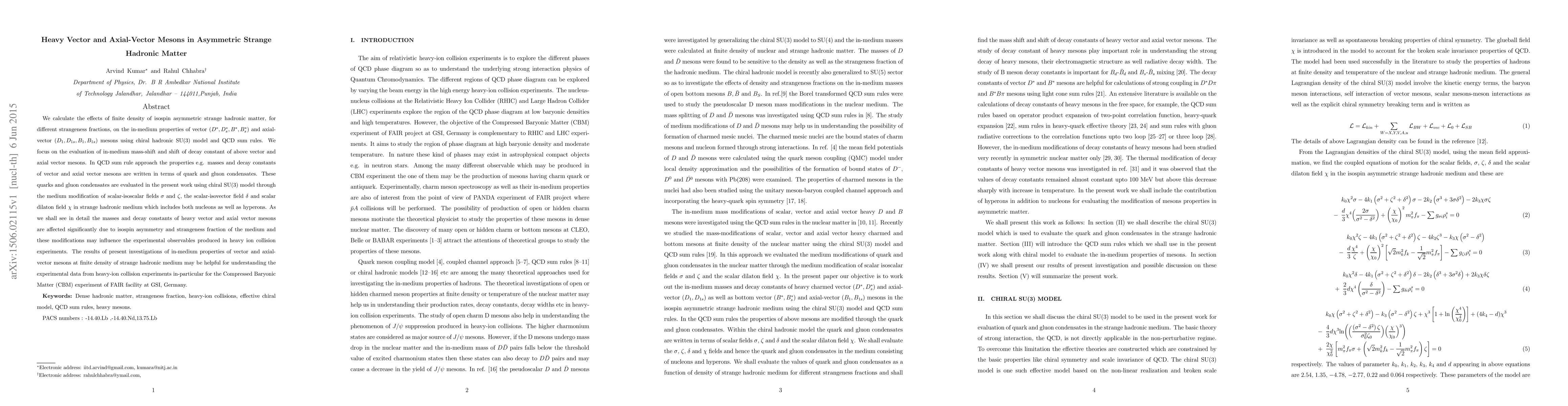 This paper investigates the in-medium properties of heavy vector and axial-vector mesons in isospin asymmetric strange hadronic matter using the chiral SU(3) model and QCD sum rules, focusing on mass-shift and decay constant changes due to strangeness and isospin asymmetry. The findings suggest significant modifications in meson properties that could influence experimental observations in heavy-ion collisions.