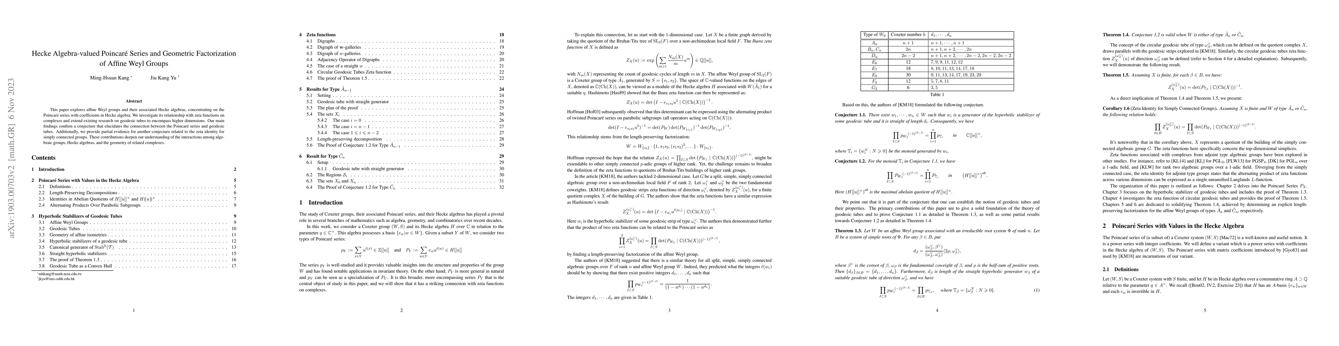 This paper investigates affine Weyl groups and their Hecke algebras, focusing on the relationship between Hecke algebra-valued Poincar\'e series and zeta functions on complexes. It confirms a conjecture linking the Poincar\'e series to geodesic tubes and offers partial evidence for a conjecture on zeta identities for simply connected groups, enhancing our understanding of algebraic and geometric interactions.