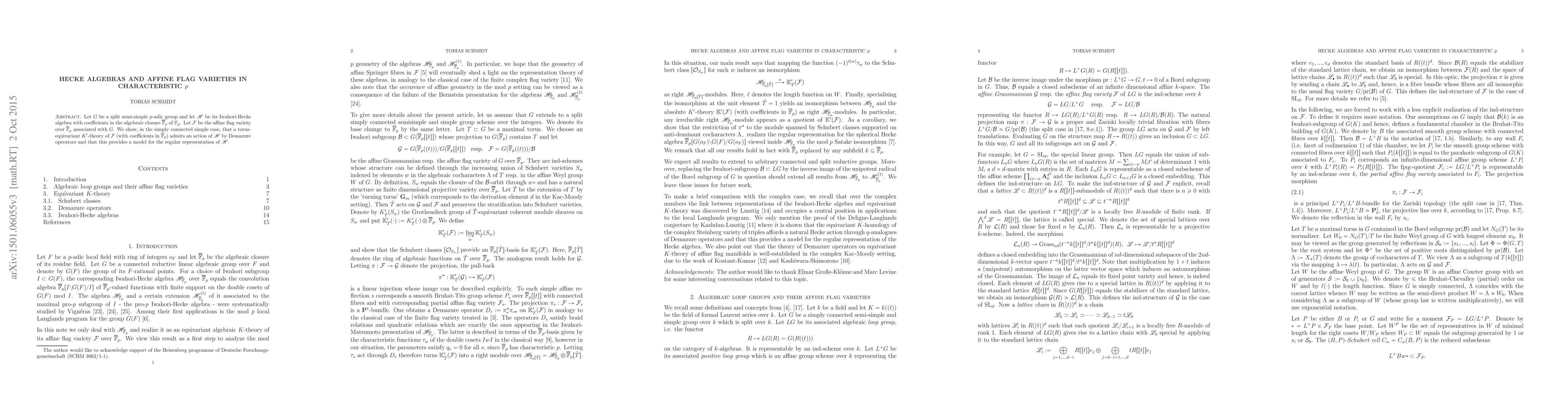 Let G be a split semi-simple p-adic group and let H be its Iwahori-Hecke algebra with coefficients in the algebraic closure k of the finite field with p elements. Let F be the affine flag variety over k associated with G. We show, in the simply connected simple case, that a torus-equivariant K'-theory of F (with coefficients in k) admits an H-action by Demazure operators and that this provides a model for the regular representation of H.