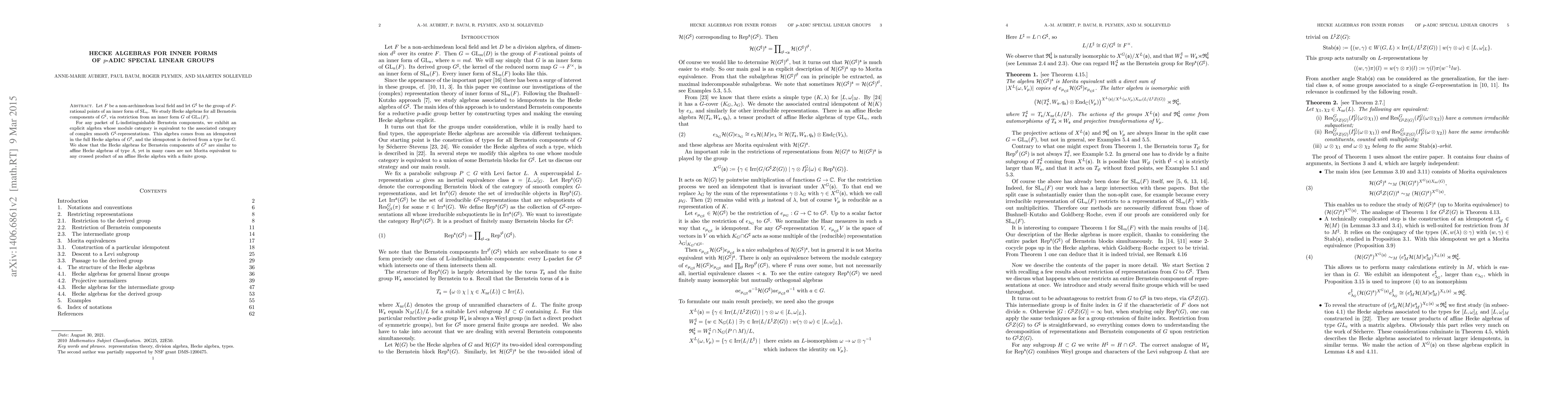 Let F be a non-archimedean local field and let $G^\sharp$ be the group of F-rational points of an inner form of $SL_n$. We study Hecke algebras for all Bernstein components of $G^\sharp$, via restriction from an inner form G of $GL_n (F)$. For any packet of L-indistinguishable Bernstein components, we exhibit an explicit algebra whose module category is equivalent to the associated category of complex smooth $G^\sharp$-representations. This algebra comes from an idempotent in the full Hecke algebra of $G^\sharp$, and the idempotent is derived from a type for G. We show that the Hecke algebras for Bernstein components of $G^\sharp$ are similar to affine Hecke algebras of type A, yet in many cases are not Morita equivalent to any crossed product of an affine Hecke algebra with a finite group.