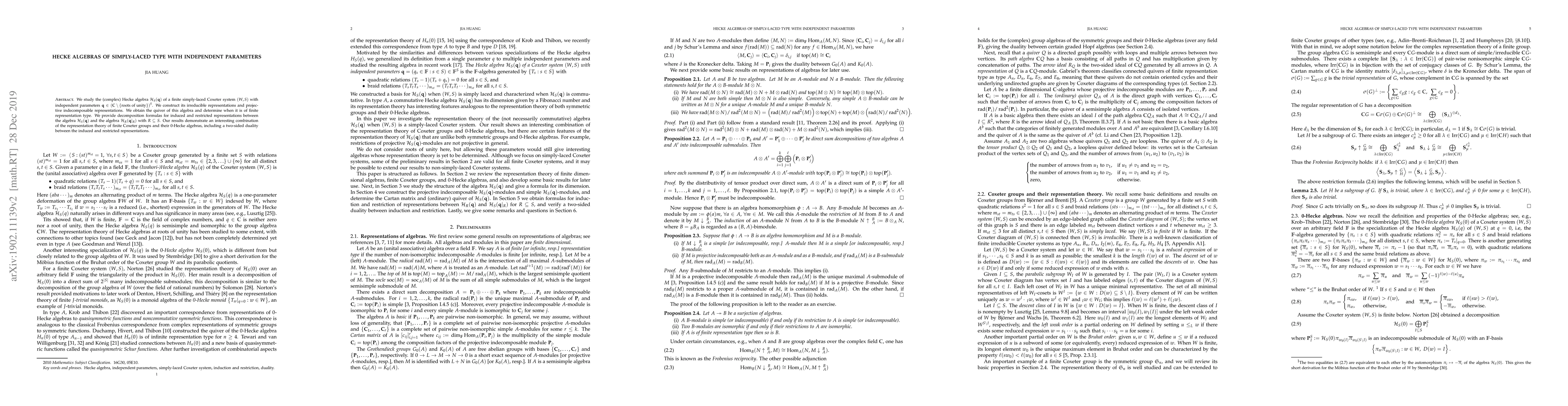 We study the (complex) Hecke algebra $\mathcal{H}_S(\mathbf{q})$ of a finite simply-laced Coxeter system $(W,S)$ with independent parameters $\mathbf{q} \in \left( \mathbb{C} \setminus\{\text{roots of unity}\} \right)^S$. We construct its irreducible representations and projective indecomposable representations. We obtain the quiver of this algebra and determine when it is of finite representation type. We provide decomposition formulas for induced and restricted representations between the algebra $\mathcal{H}_S(\mathbf{q})$ and the algebra $\mathcal{H}_R(\mathbf{q}|_R)$ with $R\subseteq S$. Our results demonstrate an interesting combination of the representation theory of finite Coxeter groups and their 0-Hecke algebras, including a two-sided duality between the induced and restricted representations.