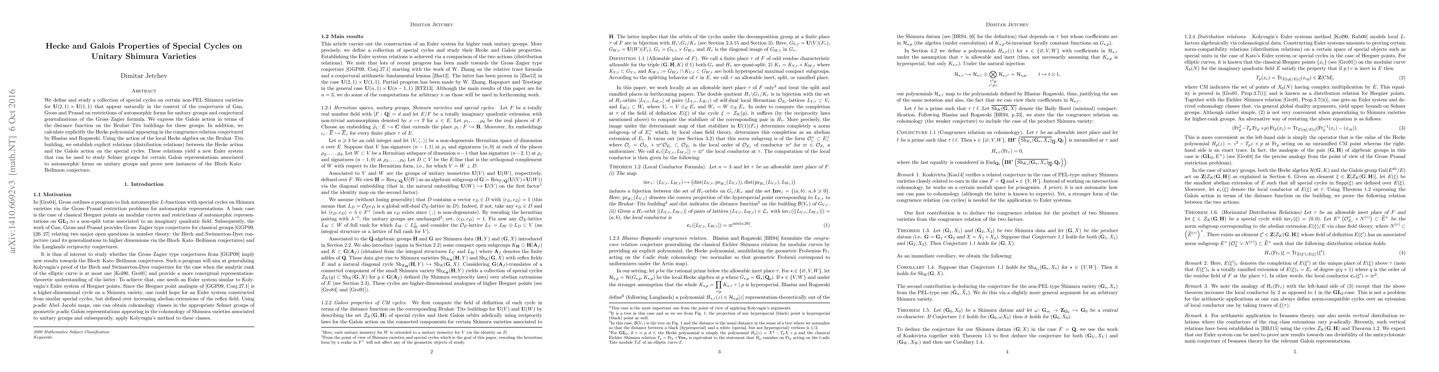 This paper defines special cycles on non-PEL Shimura varieties for $U(2,1) \times U(1,1)$ and explores their Galois and Hecke properties, establishing relations between them. It proves a Galois action formula and verifies a congruence relation, paving the way for constructing a new Euler system to support the Bloch-Kato-Beilinson conjecture.