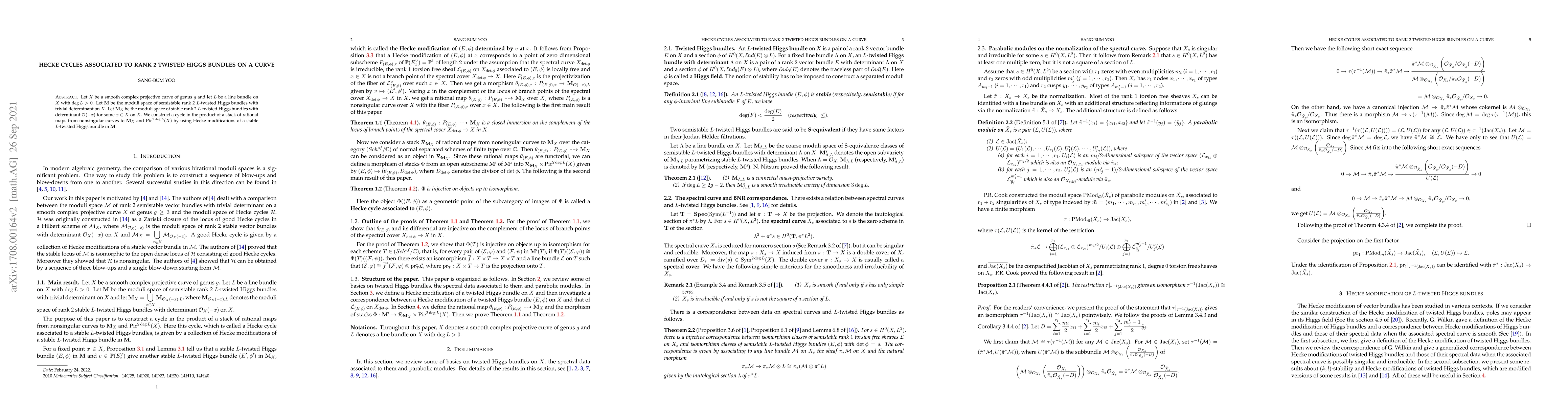 Let $X$ be a smooth complex projective curve of genus $g$ and let $L$ be a line bundle on $X$ with $\mathrm{deg}\,L>0$. Let $\mathbf{M}$ be the moduli space of semistable rank 2 $L$-twisted Higgs bundles with trivial determinant on $X$. Let $\mathbf{M}_{X}$ be the moduli space of stable rank 2 $L$-twisted Higgs bundles with determinant $\mathcal{O}(-x)$ for some $x\in X$ on $X$. We construct a cycle in the product of a stack of rational maps from nonsingular curves to $\mathbf{M}_{X}$ and $\mathrm{Pic}^{2\mathrm{deg}\,L}(X)$ by using Hecke modifications of a stable $L$-twisted Higgs bundle in $\mathbf{M}$.